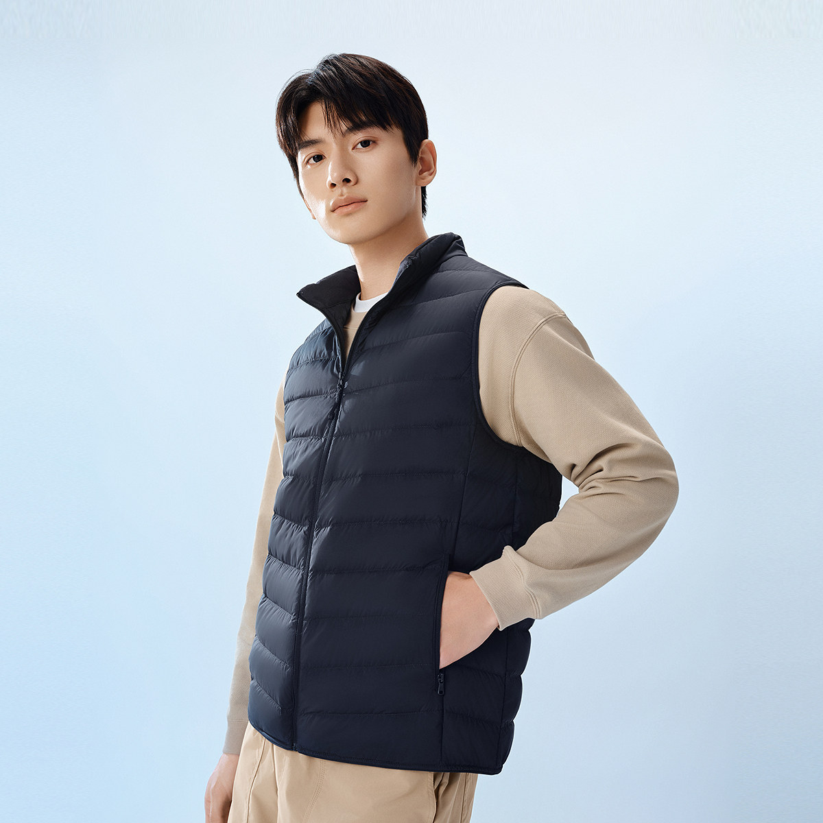 波司登25新款排骨羽绒服马甲背心内胆男士短款叠穿轻薄保暖外套