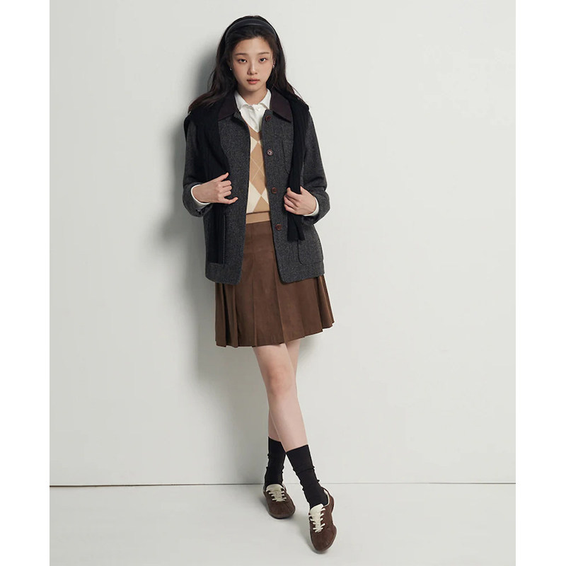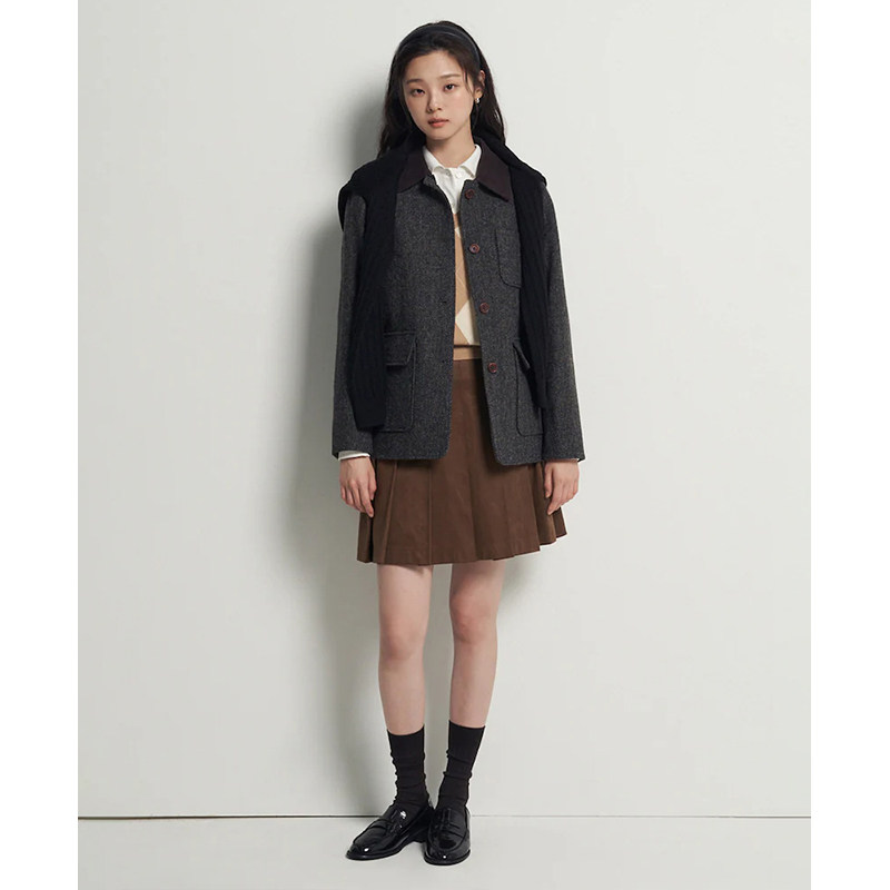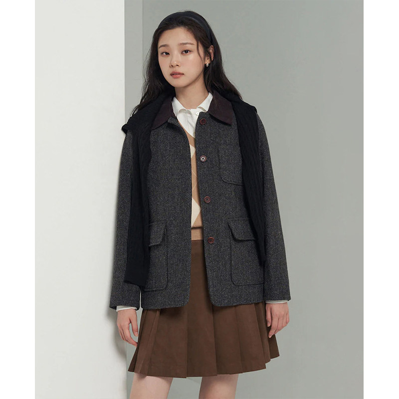 100%绵羊毛BEANPOLE滨波春季女士可拆卸领复古哈里斯西装单西外套