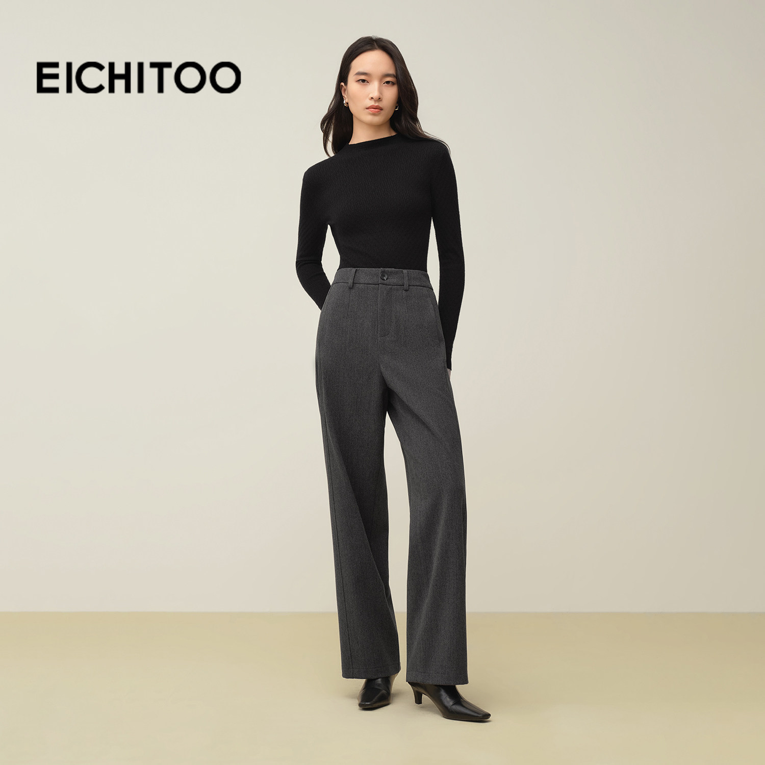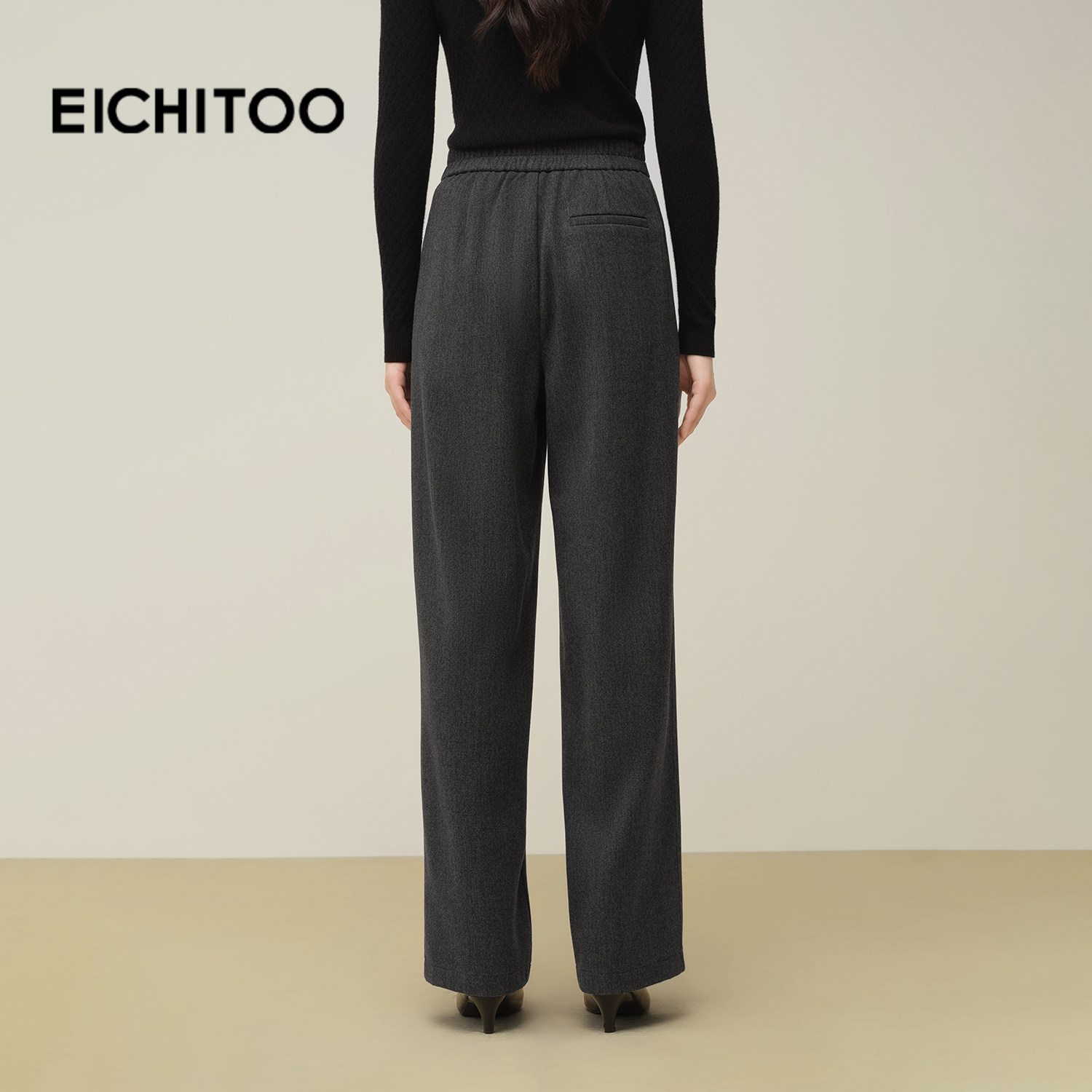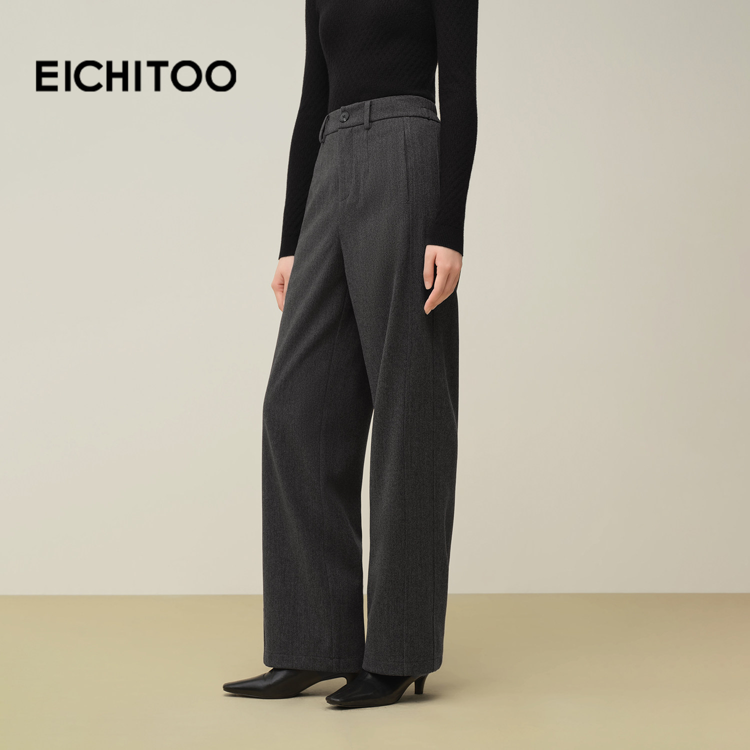 爱居兔挺括西装毛呢休闲裤2025年冬季新款女气质通勤阔腿裤