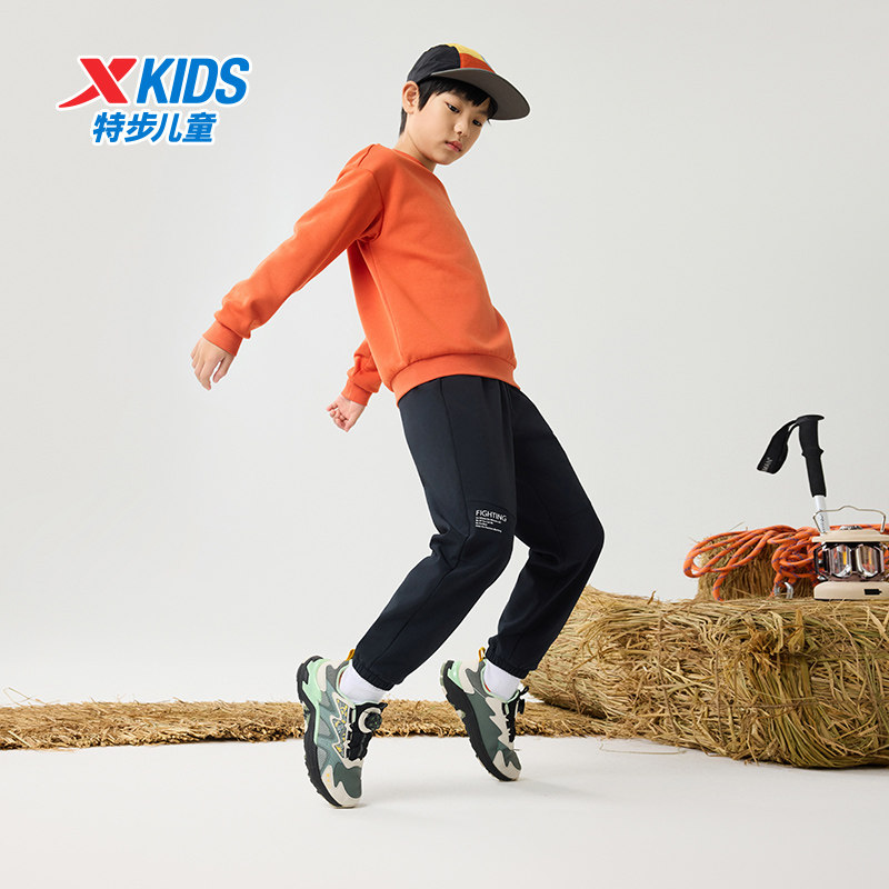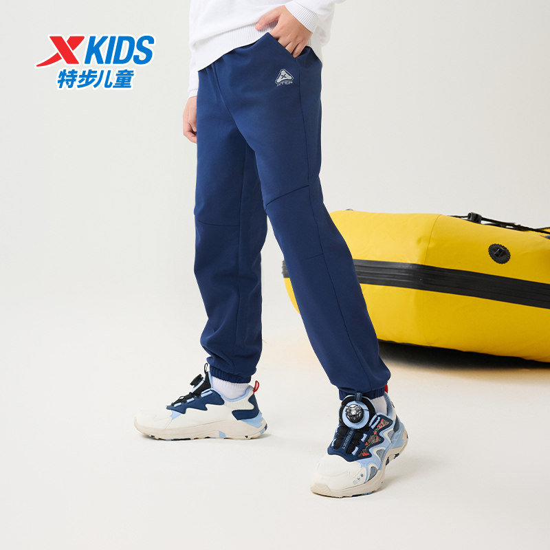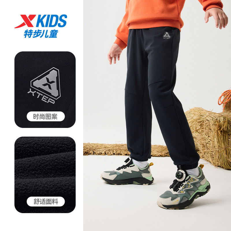 特步童装儿童加绒运动裤春秋新款男童户外保暖长裤中大童百搭裤子