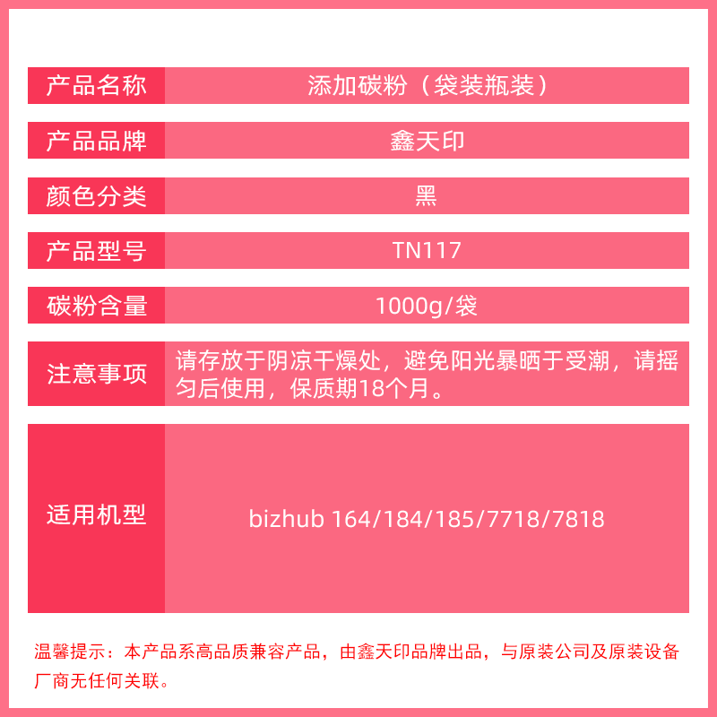 欣宇适用美能达bizhub 1q85碳粉TN117 164 184 7718 7818墨粉散粉