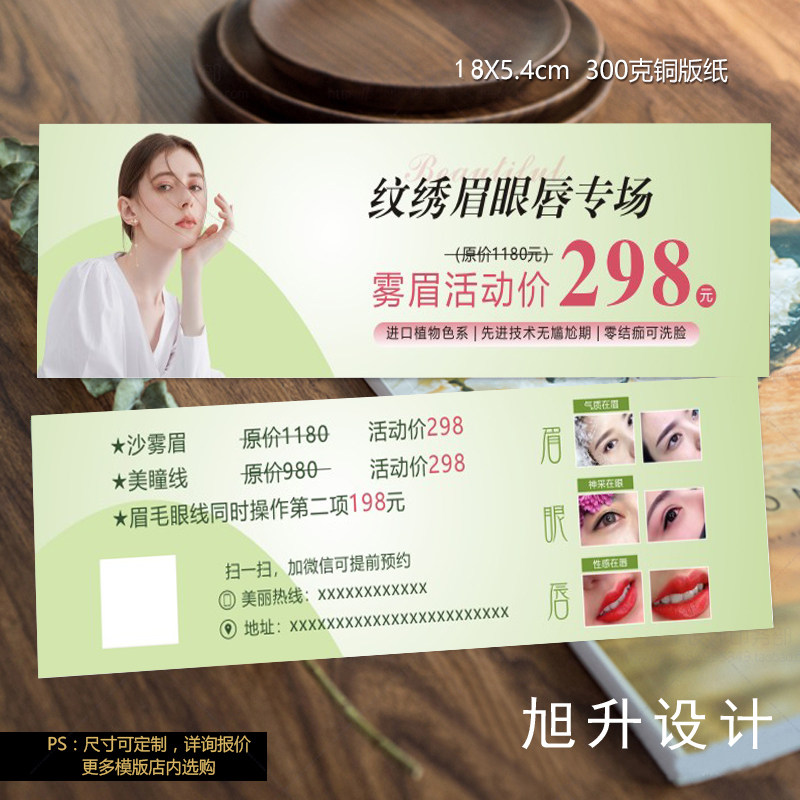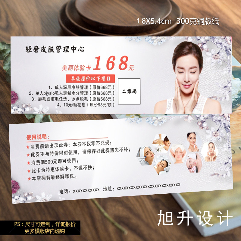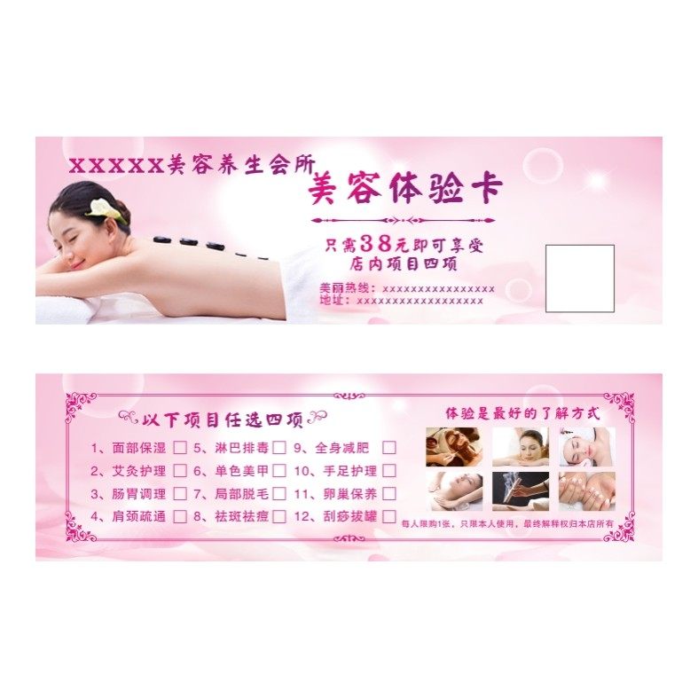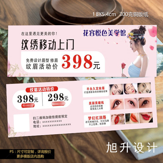 美容院拓客纹绣塑身养生会所定制代金券彩妆美体开业设计优惠印刷