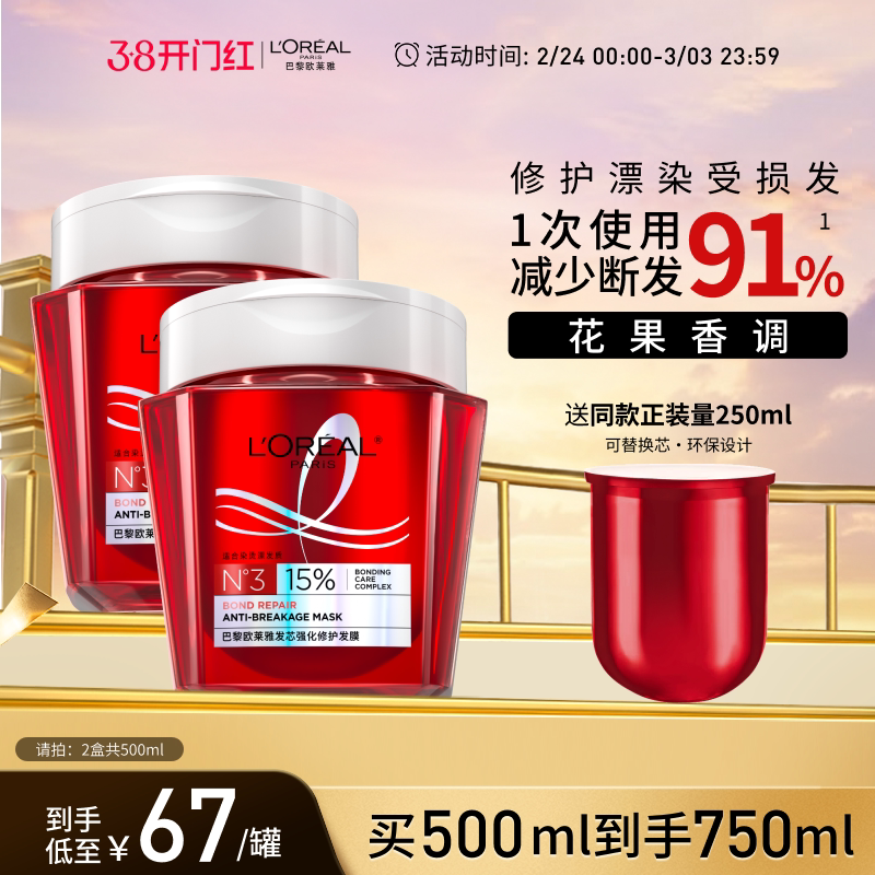 欧莱雅发芯绷带发膜强韧柔顺顺滑修护烫染受损防断发非护发素