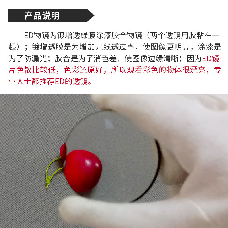 天文望远镜ED物镜显微目镜双胶合凸透镜消色差透镜直径52焦距200