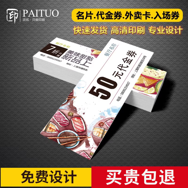 优惠券订制代金券定制宣传卡片印刷年会抽奖体验卡制作做免费设计门票入场礼品抵用卷美甲美容院拓客活动名片