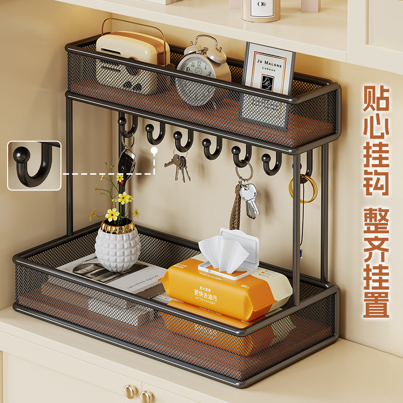 玄关钥匙收纳架家用鞋柜上门口桌面放杂物分层整理架带挂钩置物架