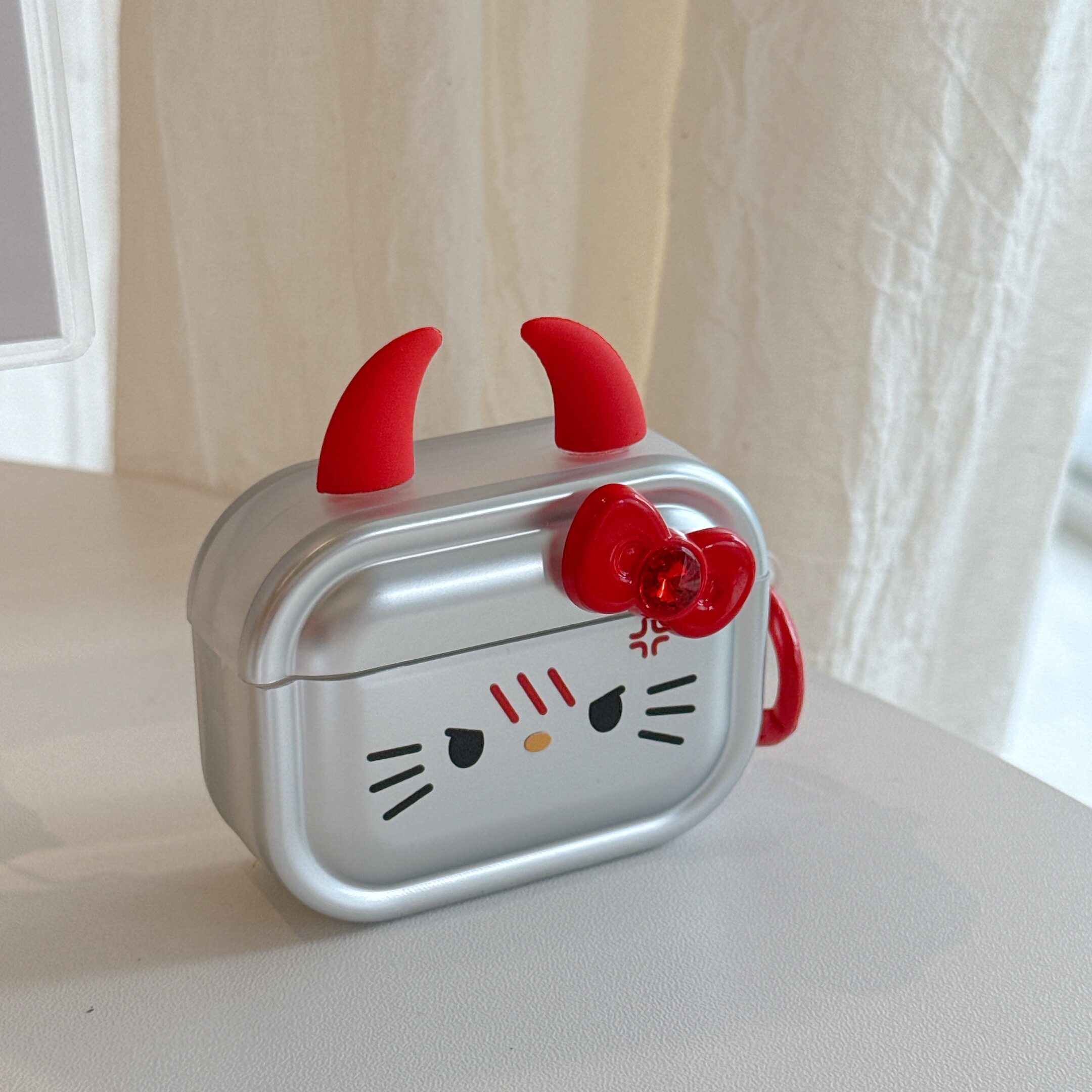 ins红色恶魔角猫咪适用airpods4保护套苹果耳机保护壳airpodspro3无线蓝牙耳机套ipod盒二三代airpods2耳机壳