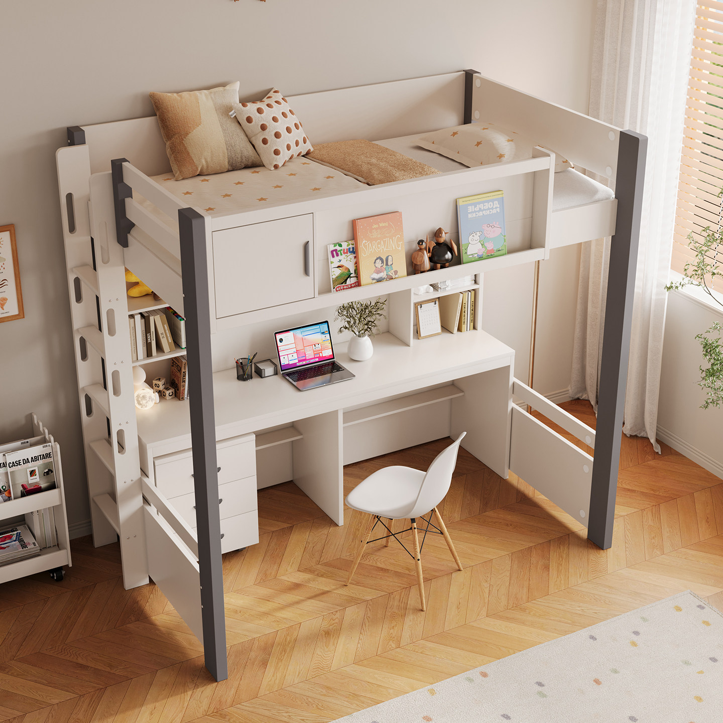 儿童带书桌组合床家用小户型一体高低成年双层上床下桌储物高架床