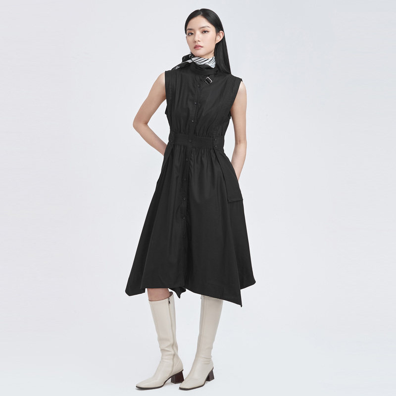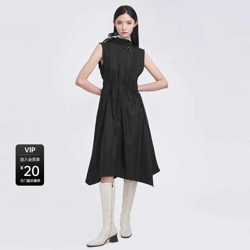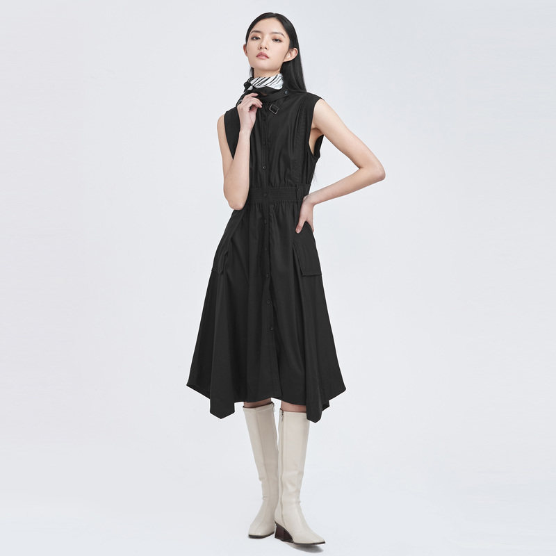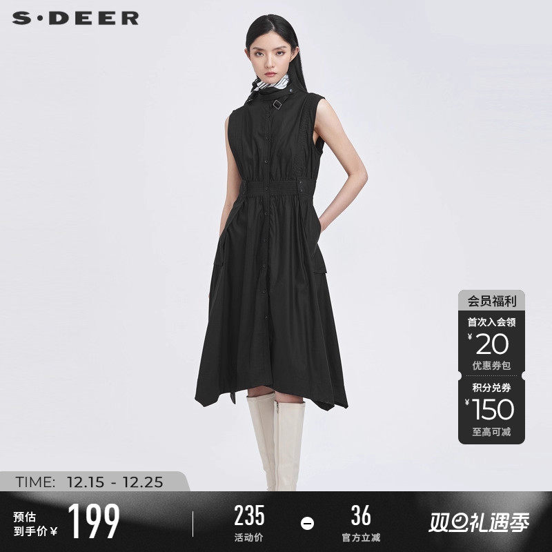 sdeer圣迪奥春秋装立领拼接不规则无袖长款马甲女S22181603