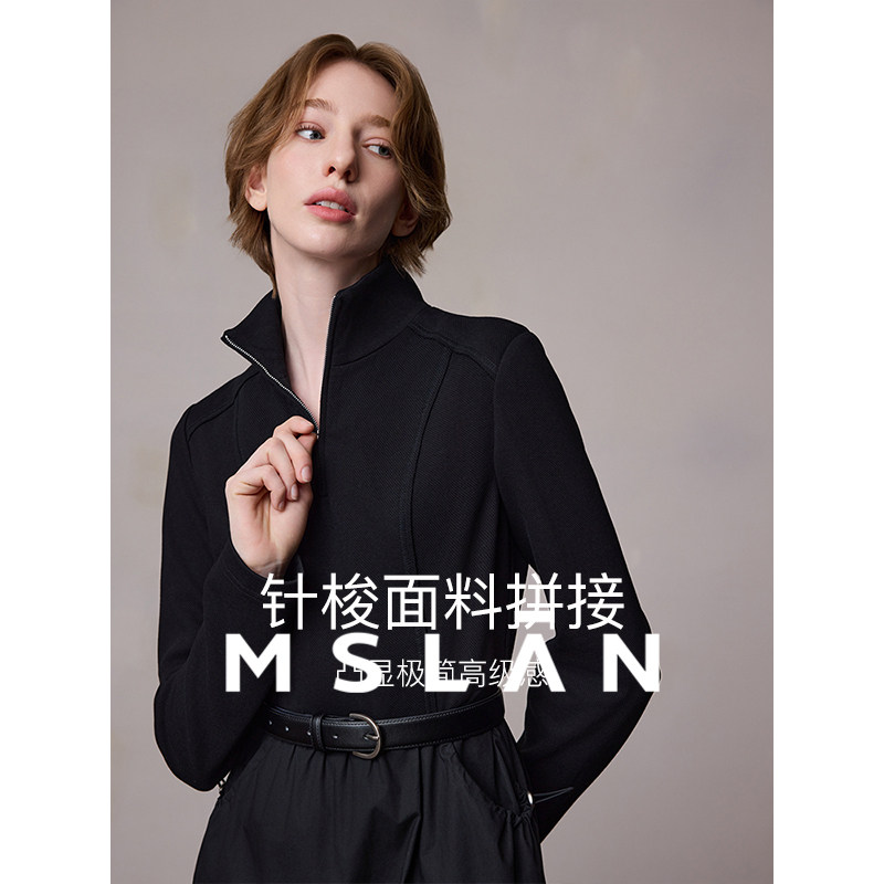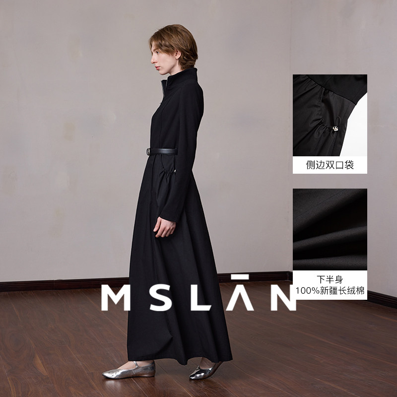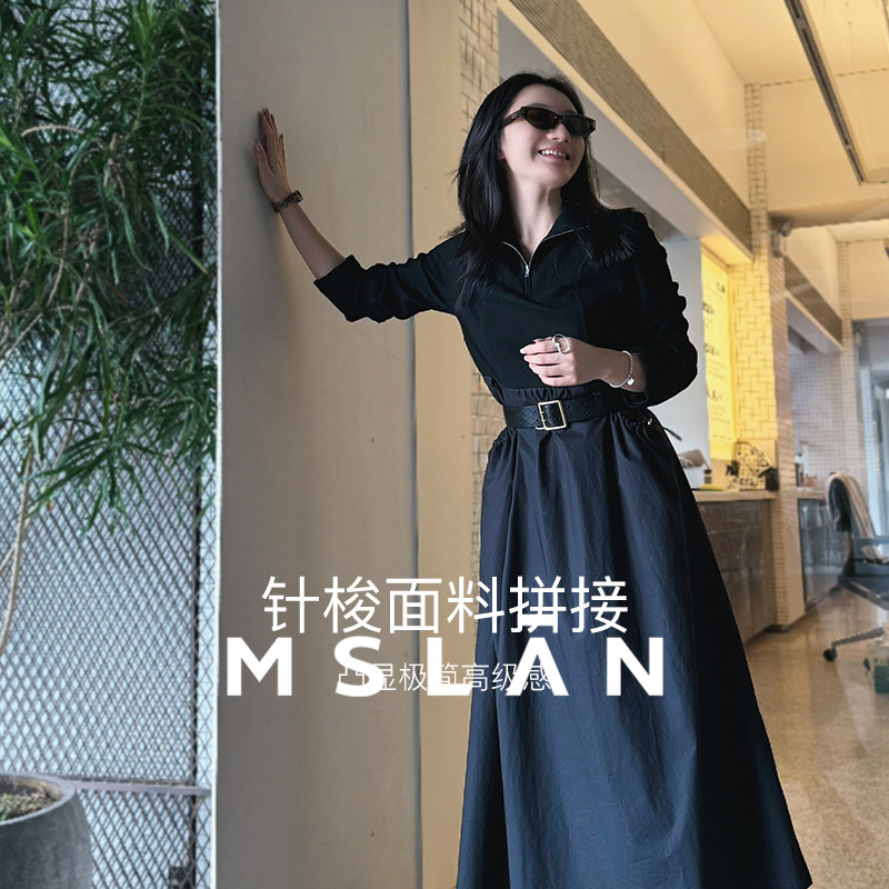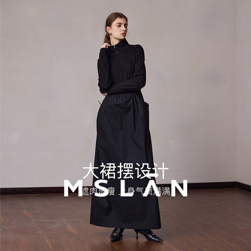 MSLAN轻户外|立领拼接A字小黑裙26春时髦收腰显瘦连衣裙