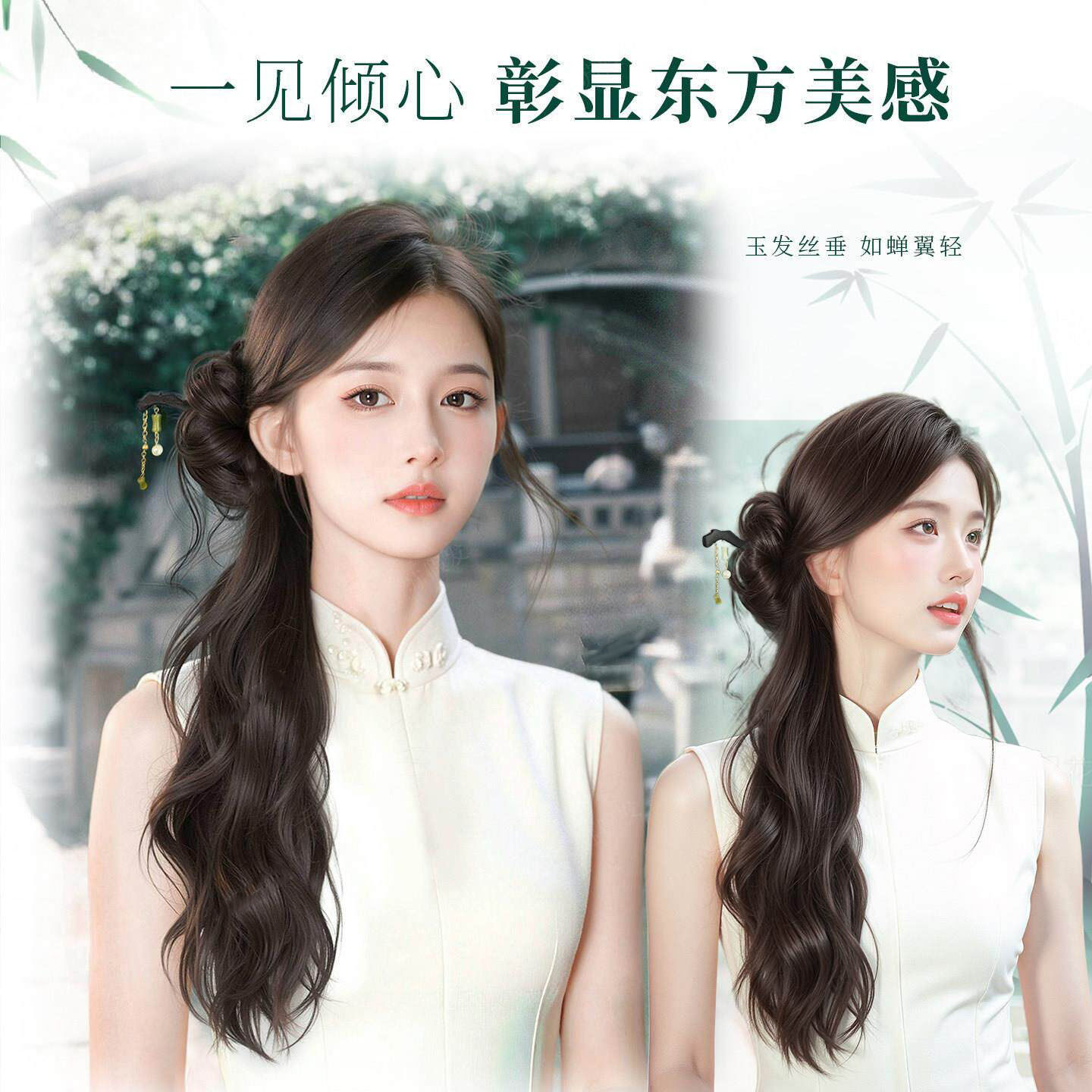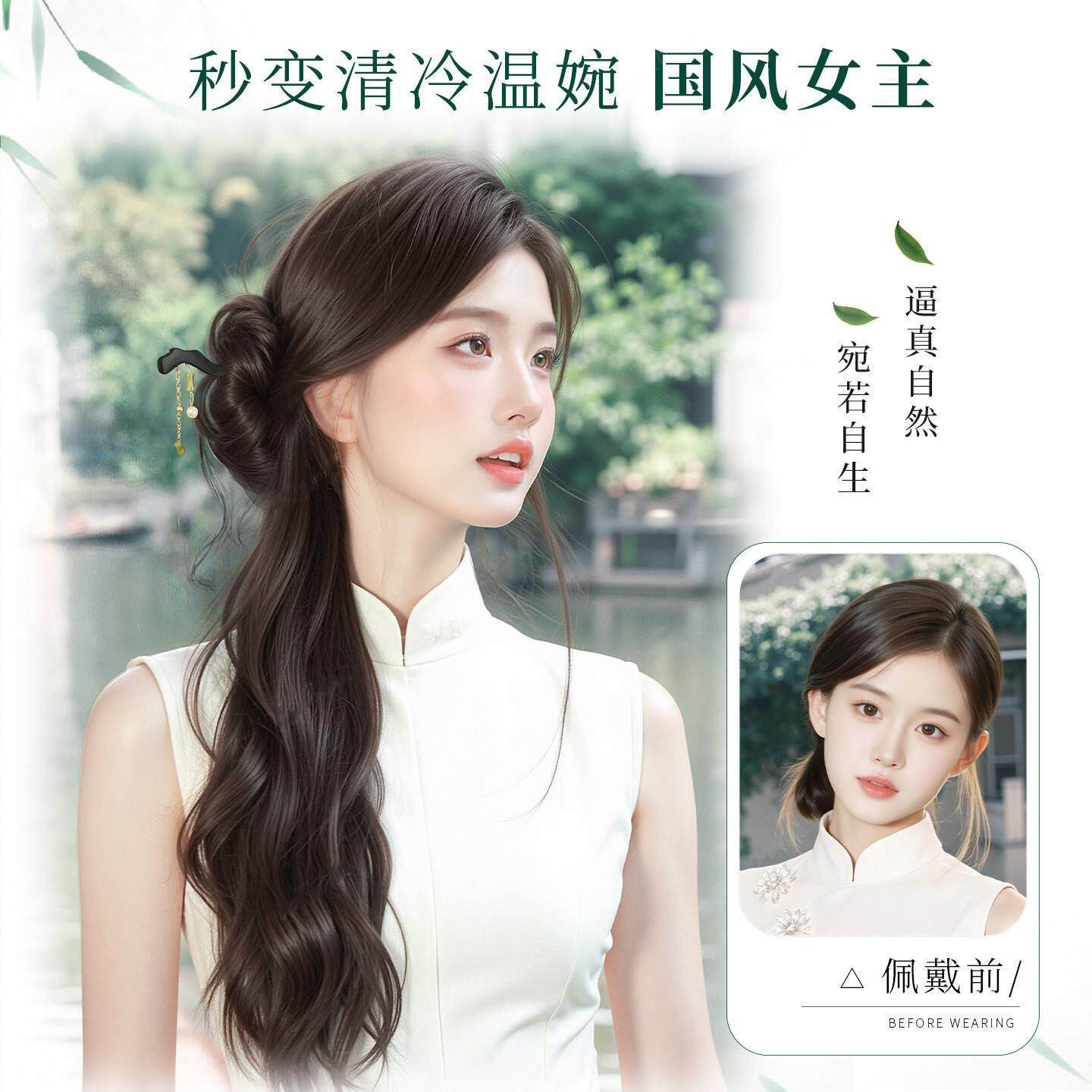 新中式假发抓夹女侧马尾汉服旗袍编发发簪马尾古风仿真发假发辫子