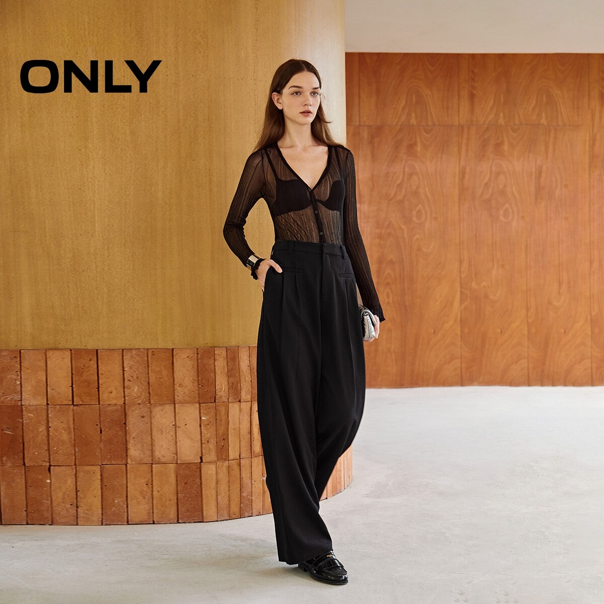 ONLY春季潮流百搭垂感西裤设计显瘦高腰长裤直筒裤休闲裤女