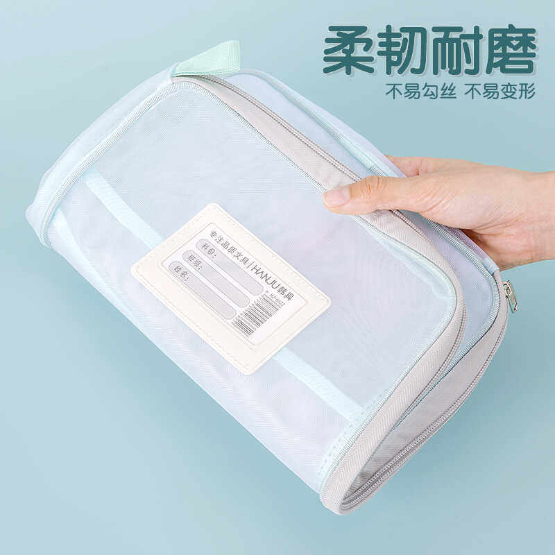 得力网纱拉链袋小号A6迷你透明拉边票据收纳袋考试笔袋加宽三角小巧笔袋考试用简约铅笔袋中高考场文具收纳袋
