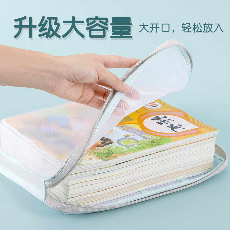科目分类文件袋透明拉链式a4收纳拎书课外班作业男女孩书包小学初中生l型考试试卷学科补习网纱手提袋大容量