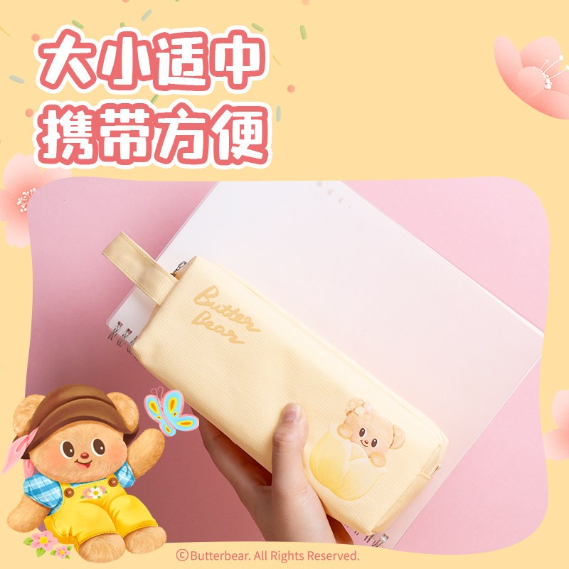 得力黄油小熊笔袋合集大容量手提式铅笔盒正版联名双层痛笔袋学生高颜值立体毛绒玩偶趴趴笔袋女生毛绒化妆包
