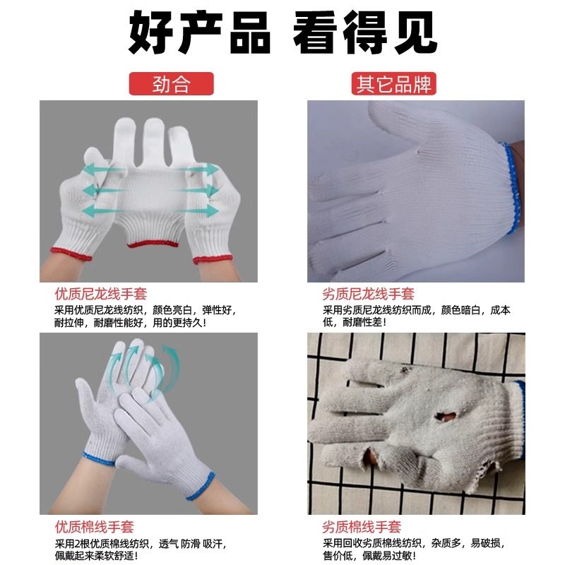 棉纱手套劳保耐磨工作加厚防滑纯白纱手套劳工透气手套男工地干活