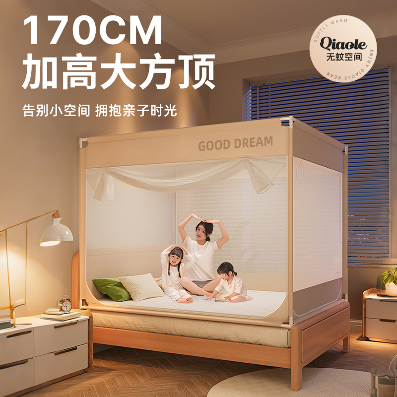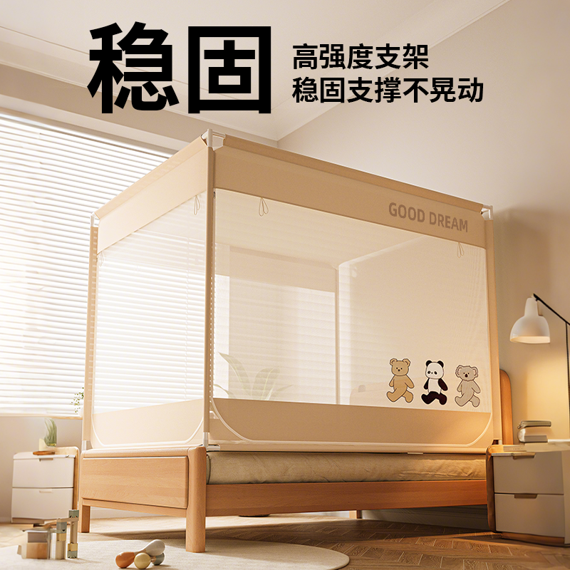 巧乐熊婴儿床防摔蚊帐儿童宝宝通用防蚊罩家用卧室成人三开门蚊帐