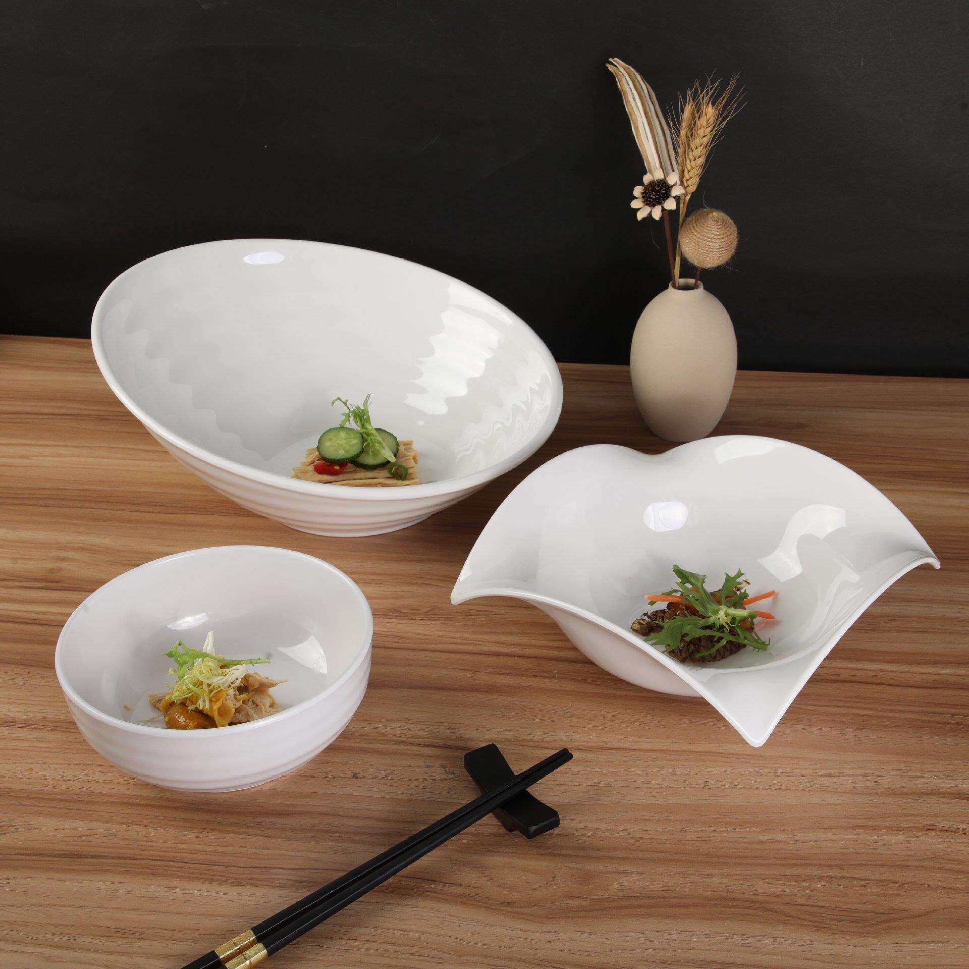 密胺异形纯色创意螺纹斜口碗西式沙拉碗上菜盘酒店餐厅料理碗餐具