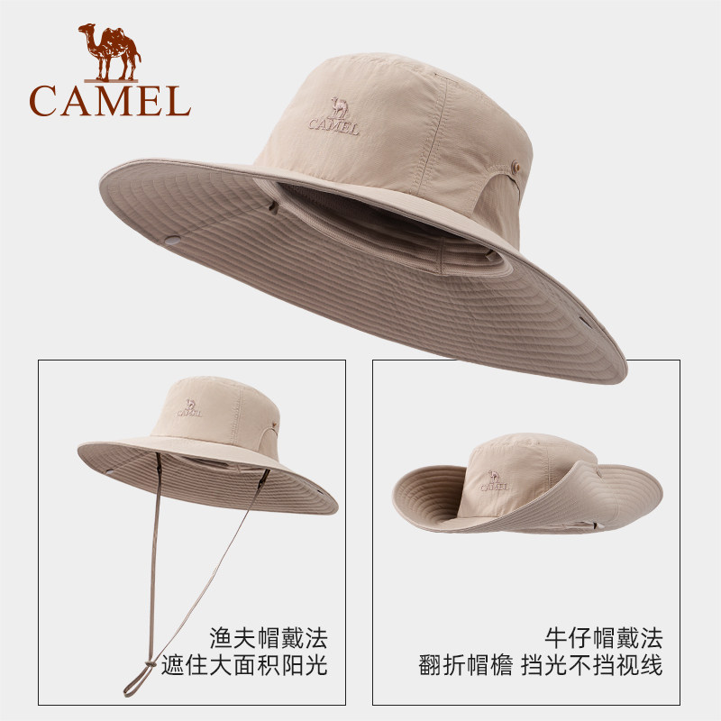 骆驼渔夫帽大帽檐女防紫外线太阳帽牛仔帽男徒步登山遮阳防晒帽子