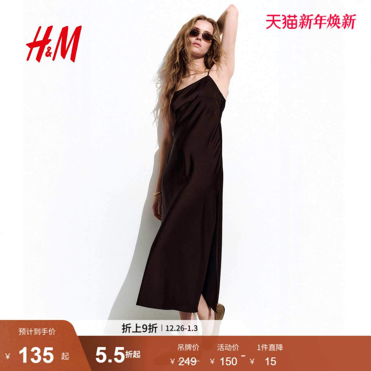 HM女装背心吊带连衣裙2025冬新款宽松法式方领亚麻混纺裙1282984