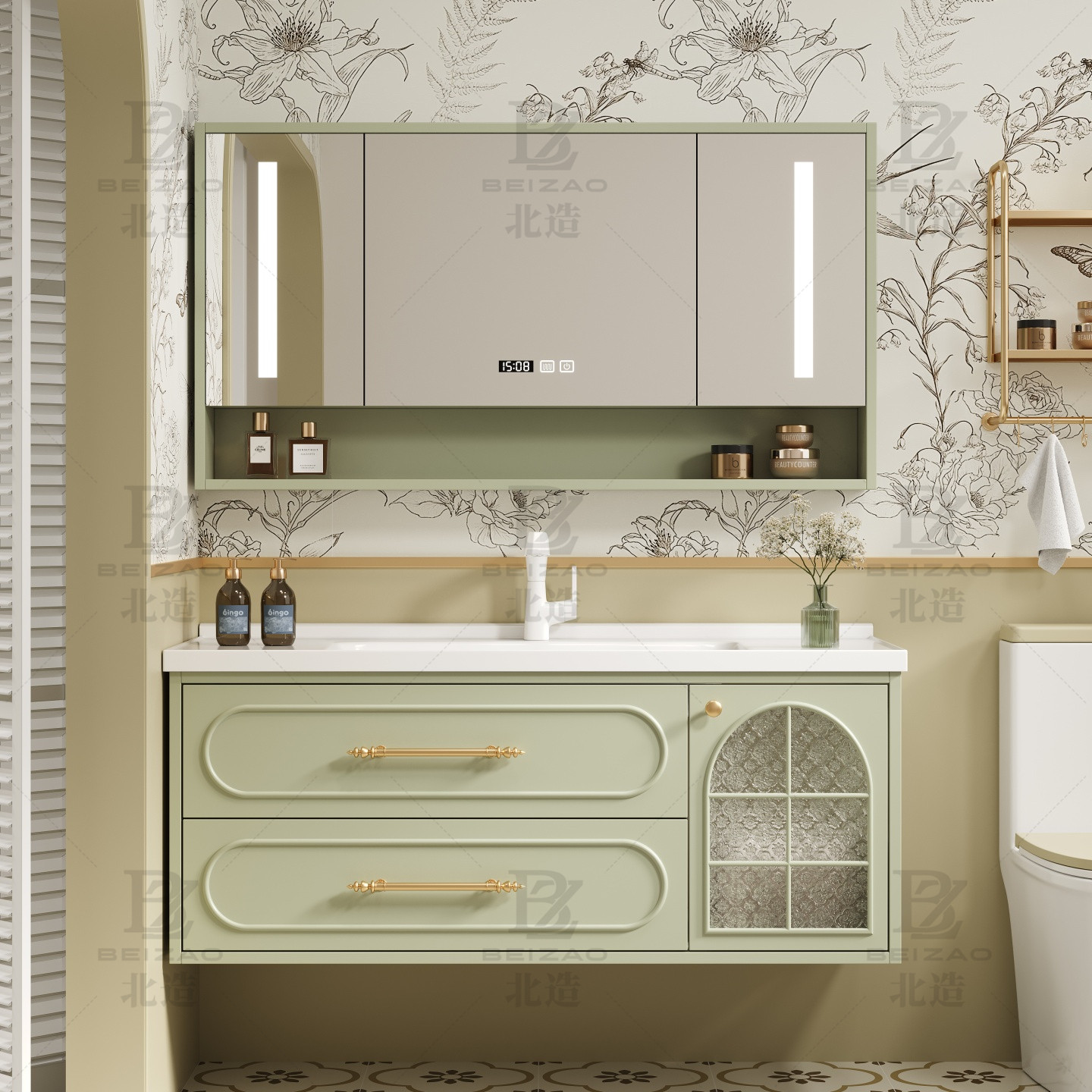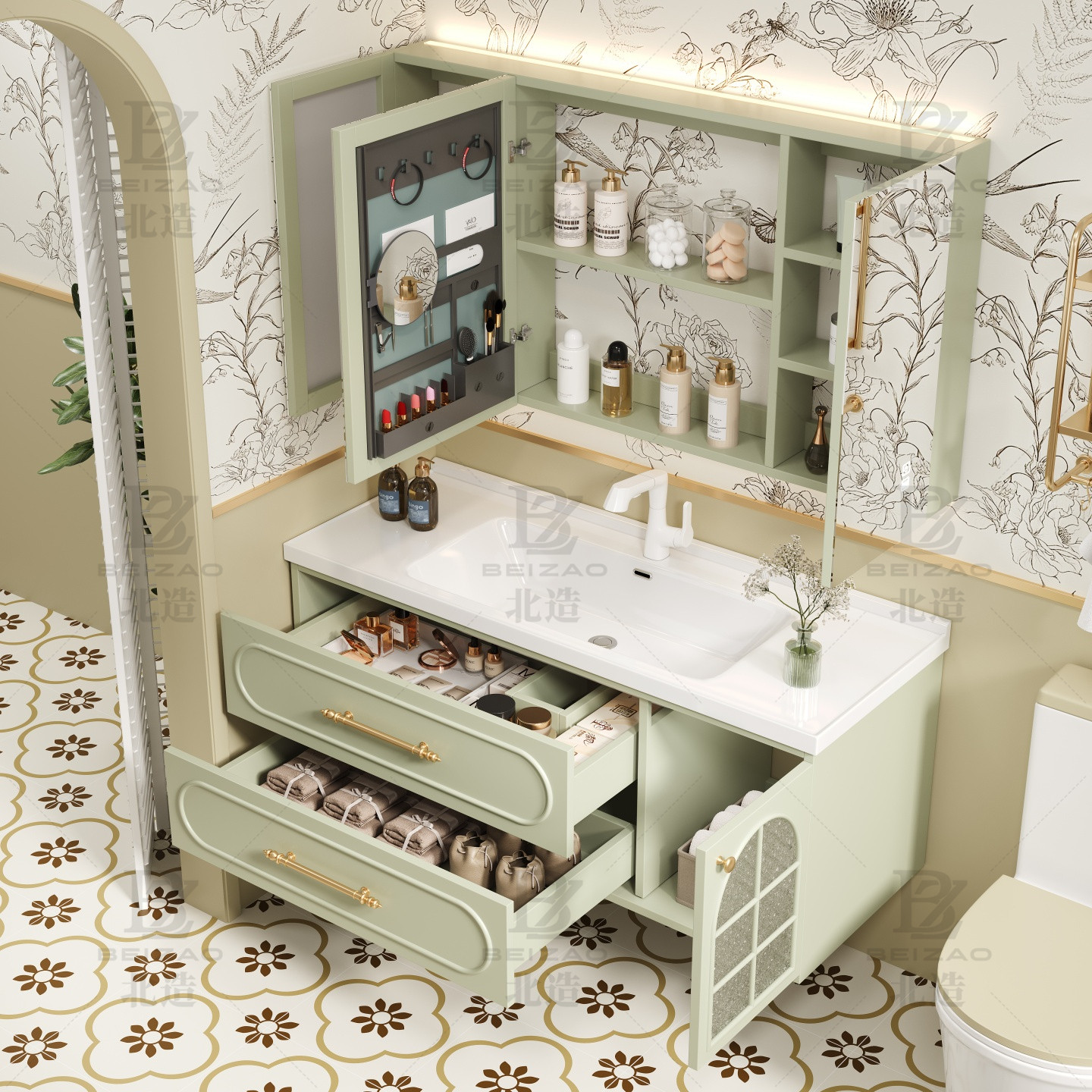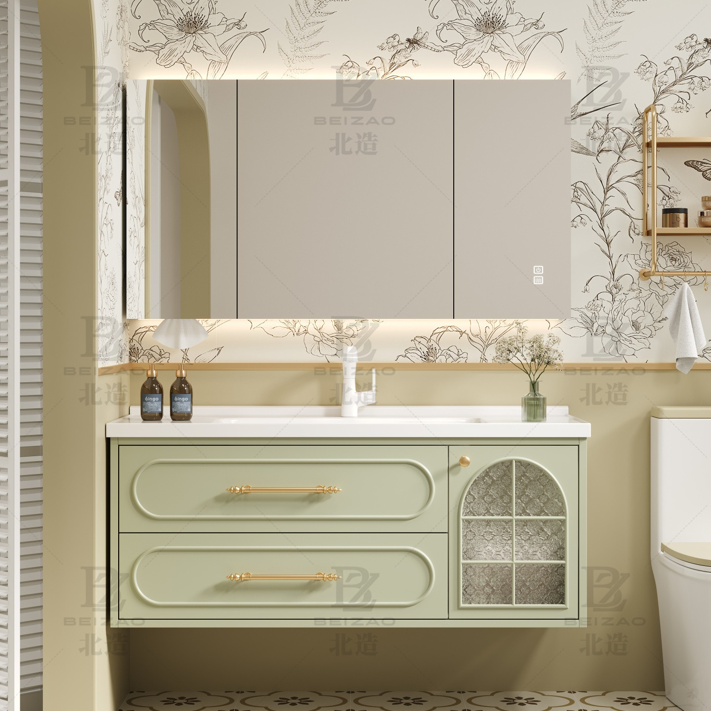 法式橡木浴室柜组合陶瓷一体盆洗手台卫生间洗手池奶油风洗脸盆柜
