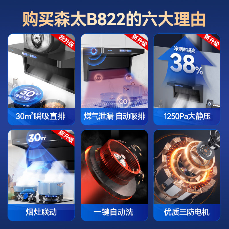 森太变频大吸力抽油烟机B822小尺寸顶侧双吸家用厨房以旧换新补贴