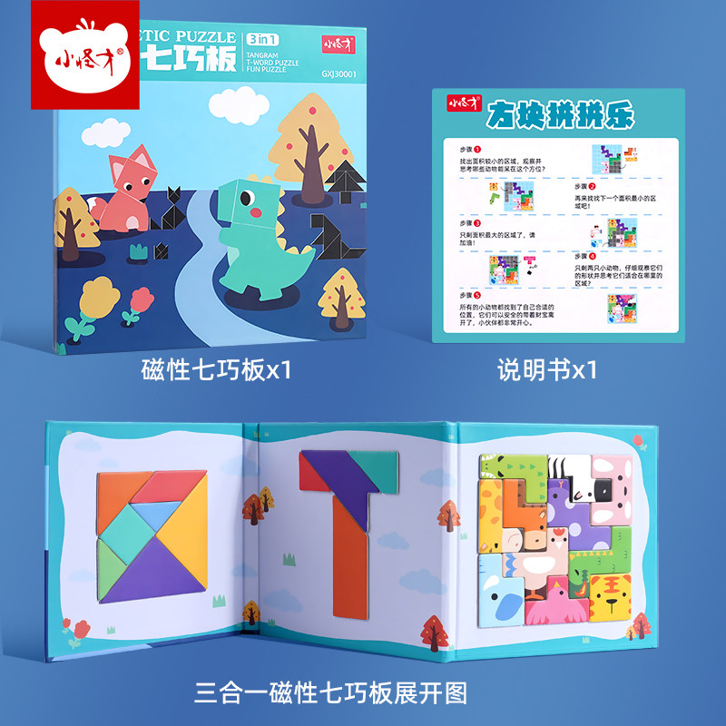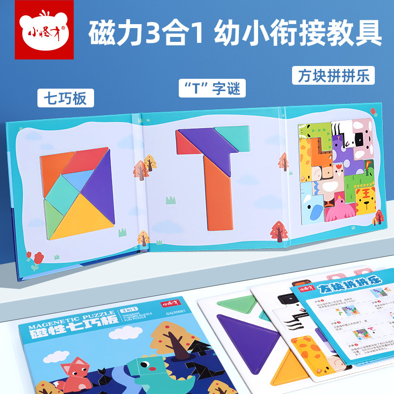 磁力七巧板智力拼图一年级小学生专用磁性儿童幼儿园磁吸益智玩具