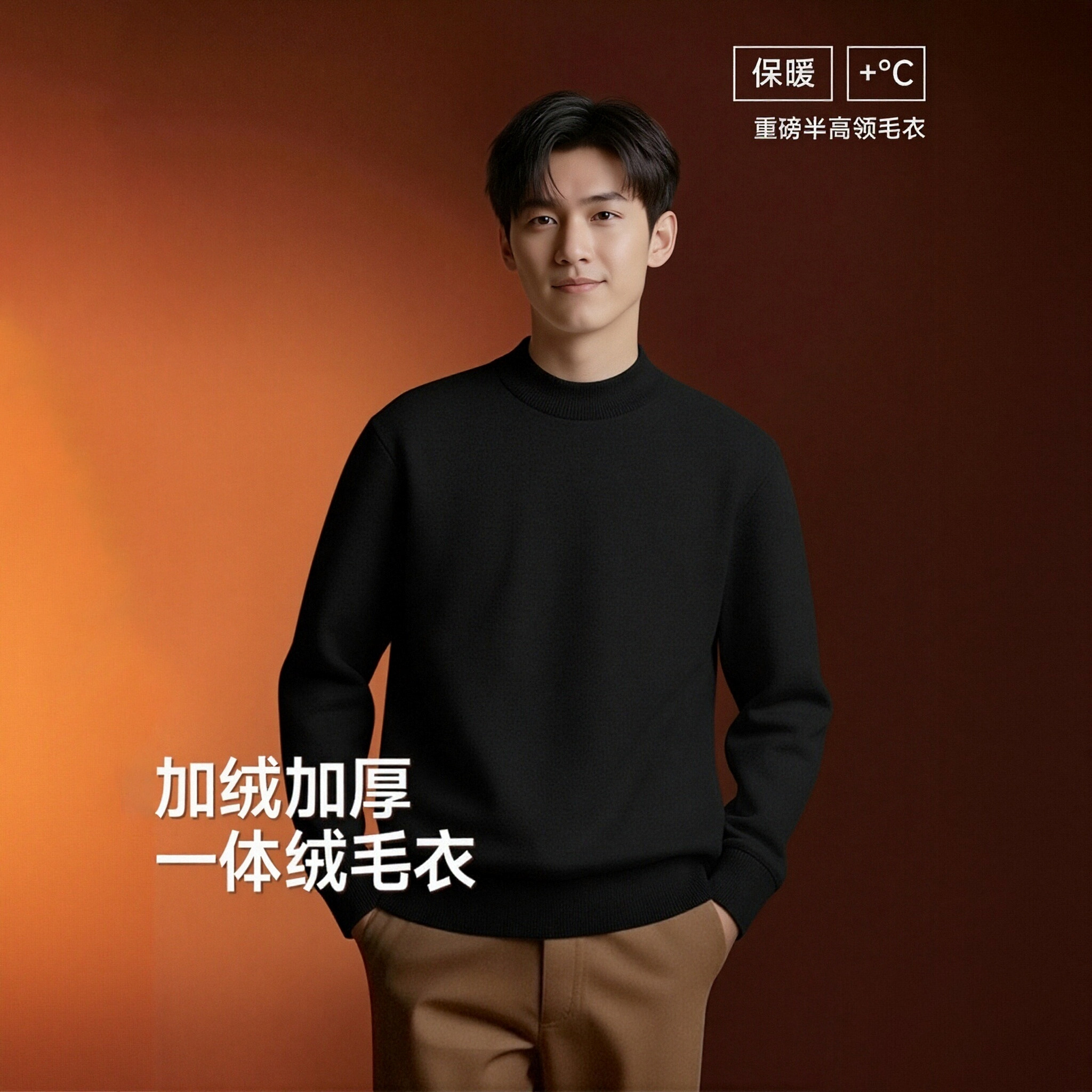 森马毛衫男冬季含羊绒针织衫发热抑菌2025新款基础圆领黑色打底衫