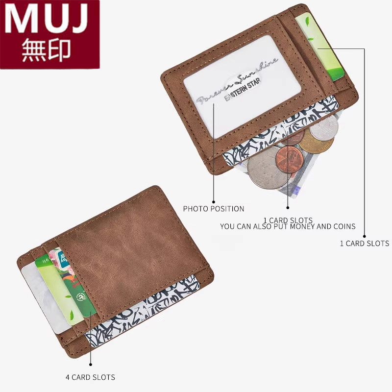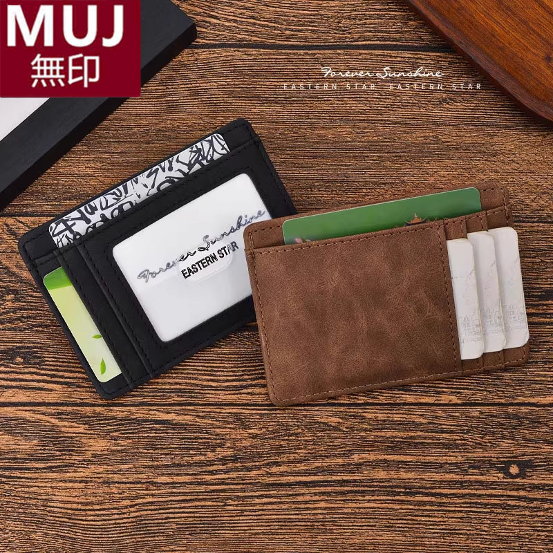 無印MUJ多卡位卡套卡包复古疯马皮一片式卡夹迷你超薄证件卡片包