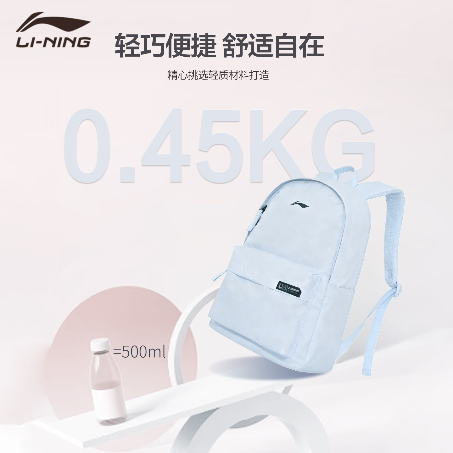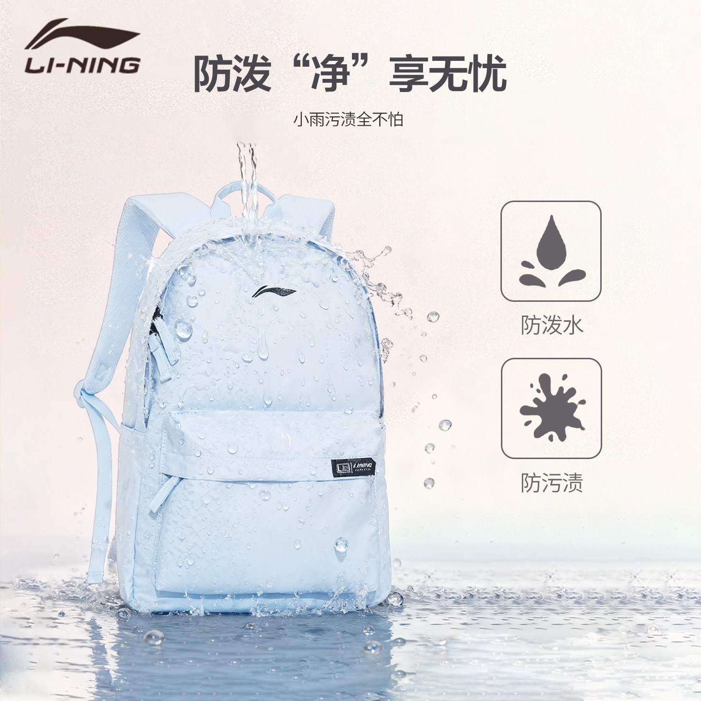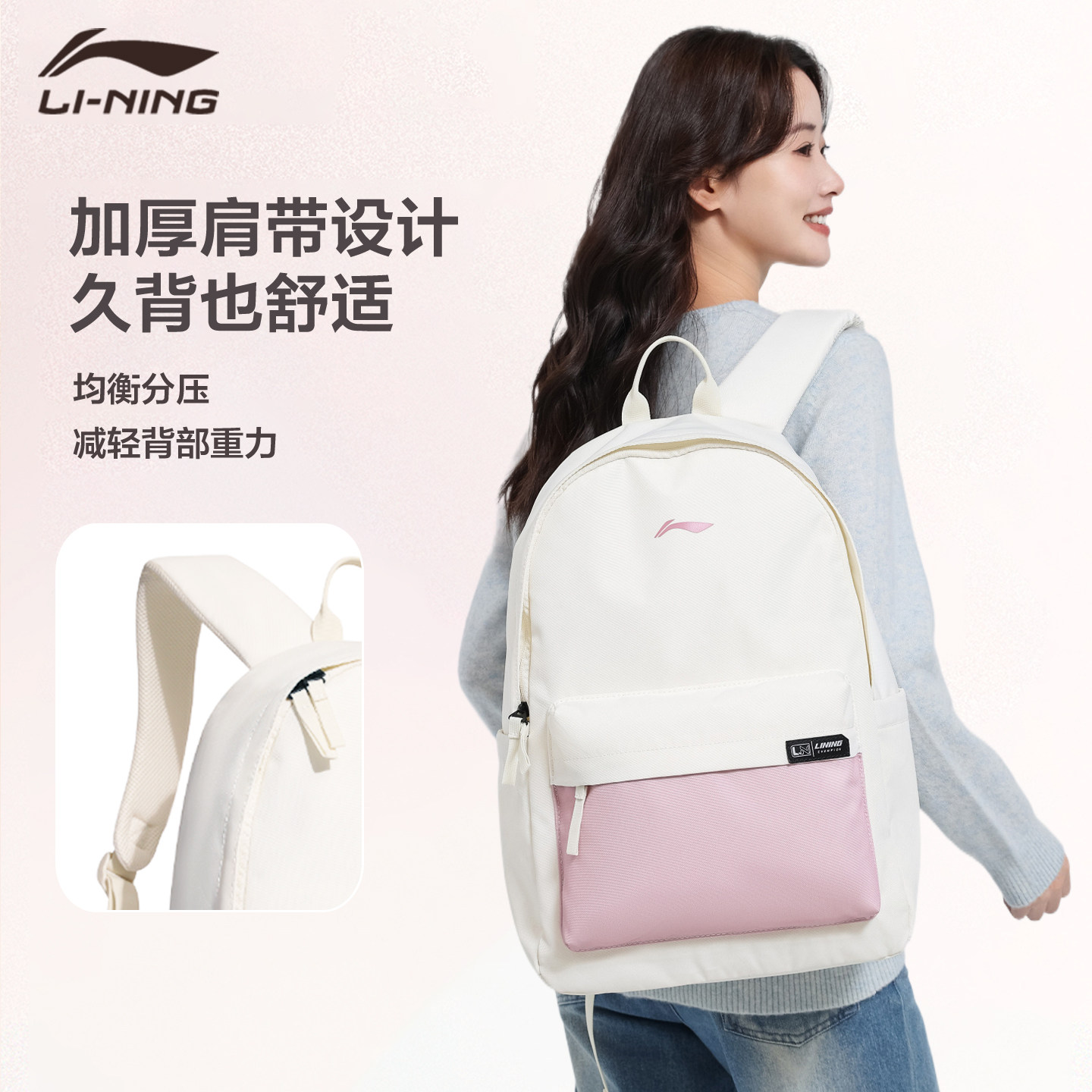 李宁双肩包2025年新款初中生高中生大学生书包女粉紫色大容量背包