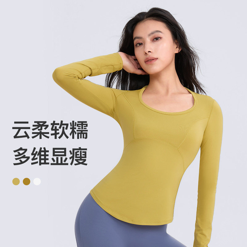 假两件带胸垫瑜伽服套装T恤女普拉提运动上衣纯欲显瘦健身长袖春