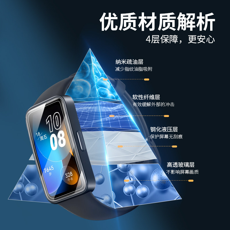 适用华为手环8膜手环8保护膜全屏覆盖2023新款nfc版智能运动手环贴膜曲面全包防指纹表盘钢化膜八代高清屏保