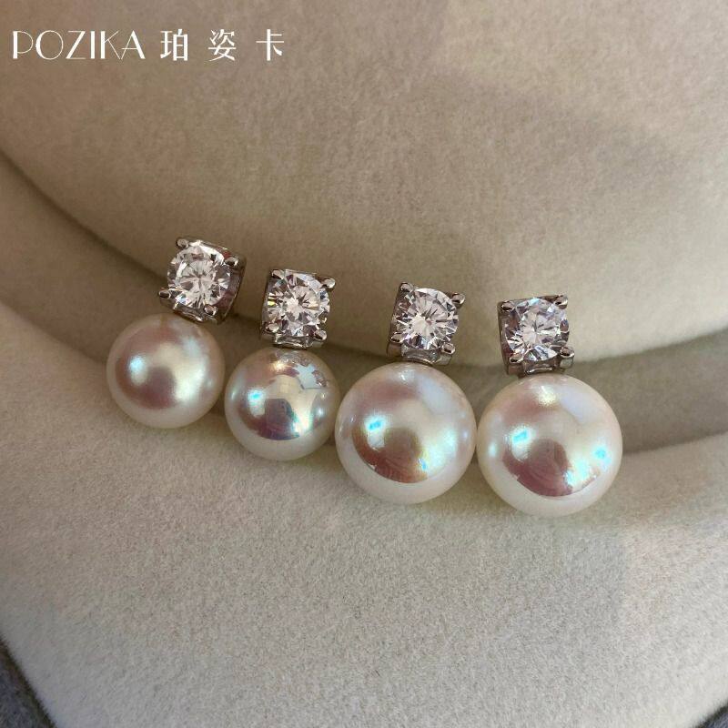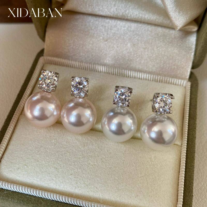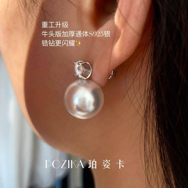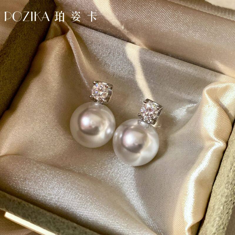 经典戴妃款澳白珍珠耳钉女生纯银法式轻奢高级感2025新款耳环耳饰