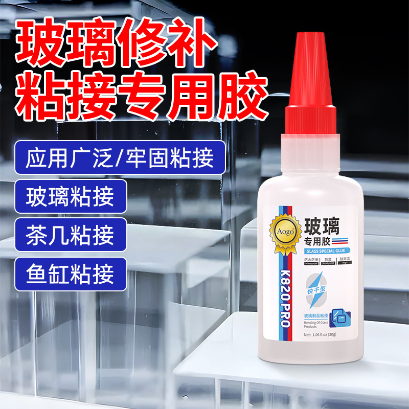 aogo 粘玻璃专用胶水快干胶粘有机玻璃鱼缸镜子茶几花盆窗户杯子水晶茶几断裂修补奖杯万能玻璃粘合剂