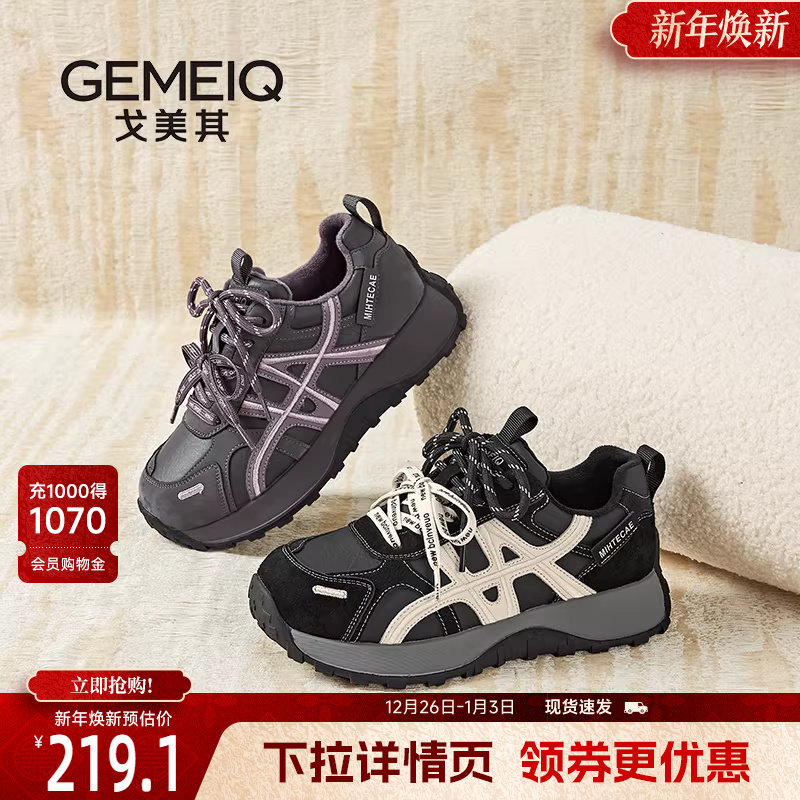 戈美其商场同款厚底老爹鞋女款2025冬季新款爆款加绒休闲运动鞋子
