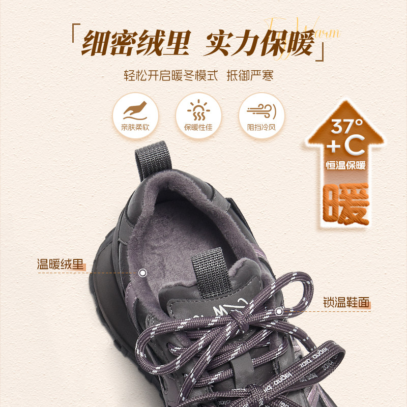 人本德训鞋女款2025新款春秋冬季加绒二棉鞋保暖板鞋运动休闲鞋子