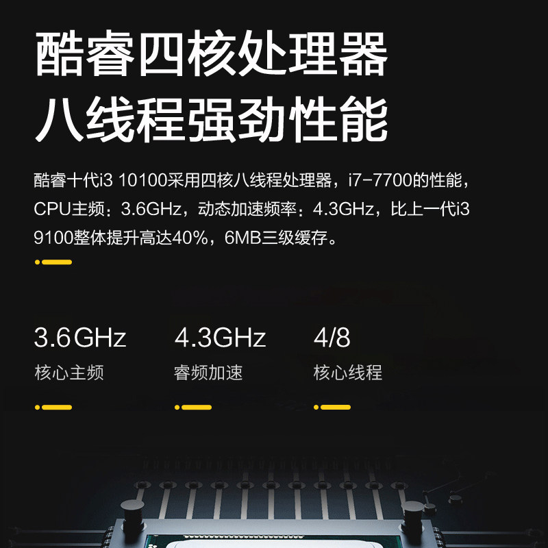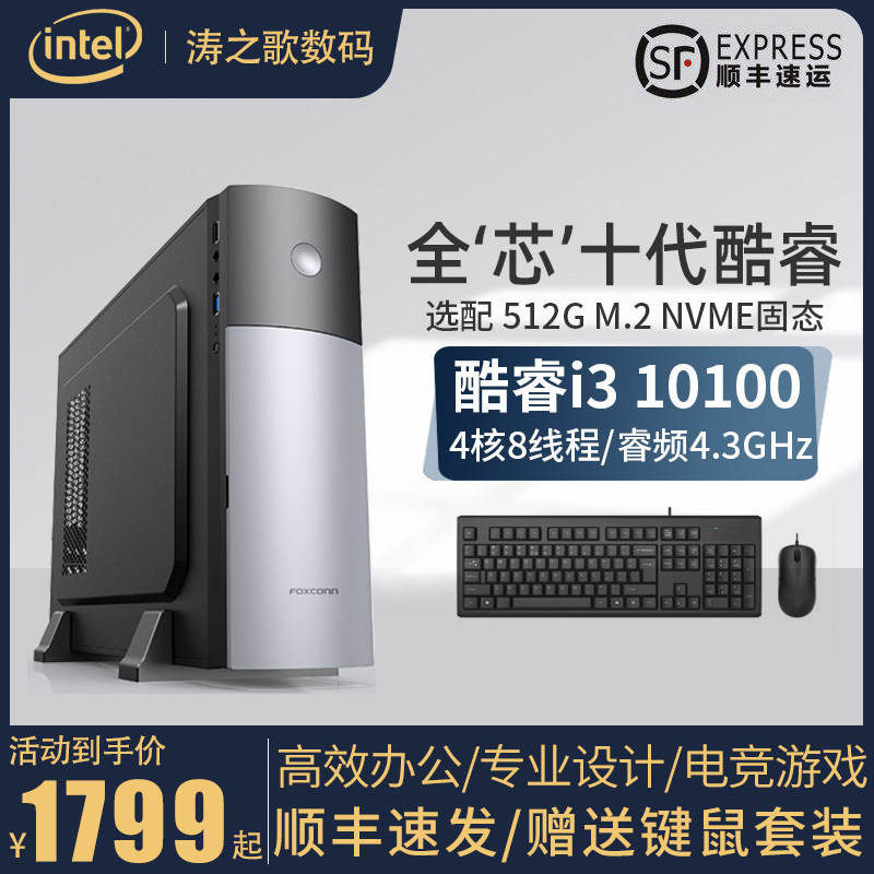 intel 酷睿I3 10100 512G NVME M.2 电商办公网课HPTC小主机企业采购财务PS设计师电脑台式组装机全套DIY整机