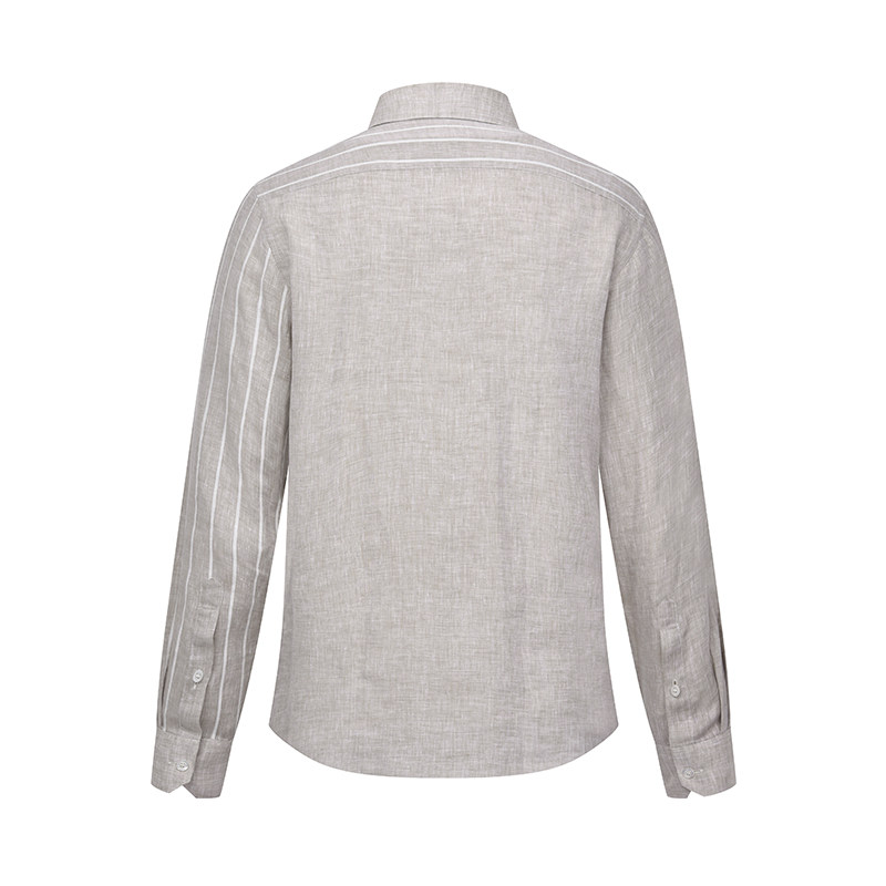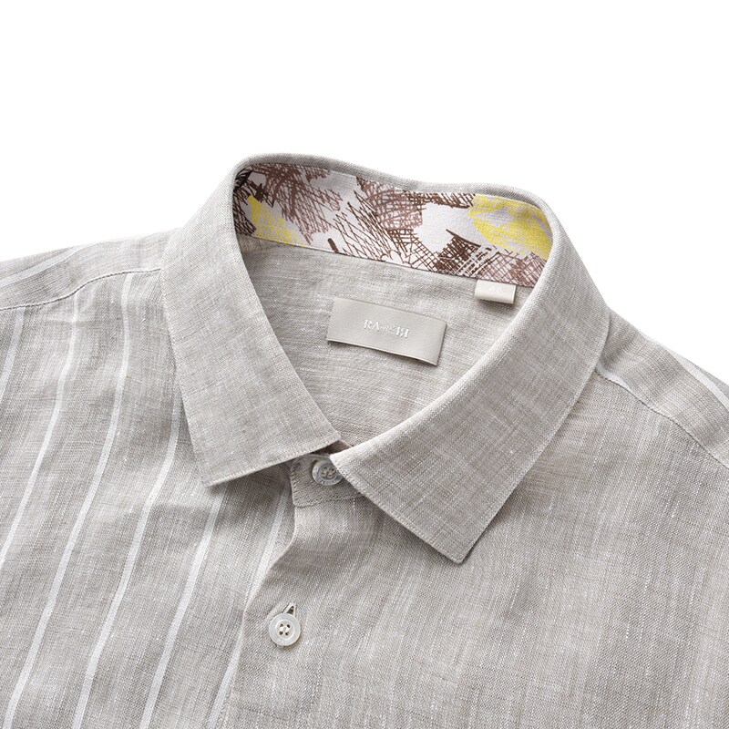 【亚麻】RARE威雅男装 夏季新款男士衬衣卡其色长袖衬衫