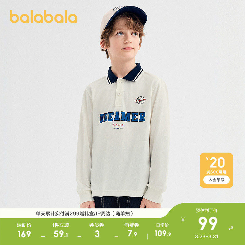 巴拉巴拉童装男童长袖t恤儿童打底POLO衫春秋装潮酷百搭上衣速干
