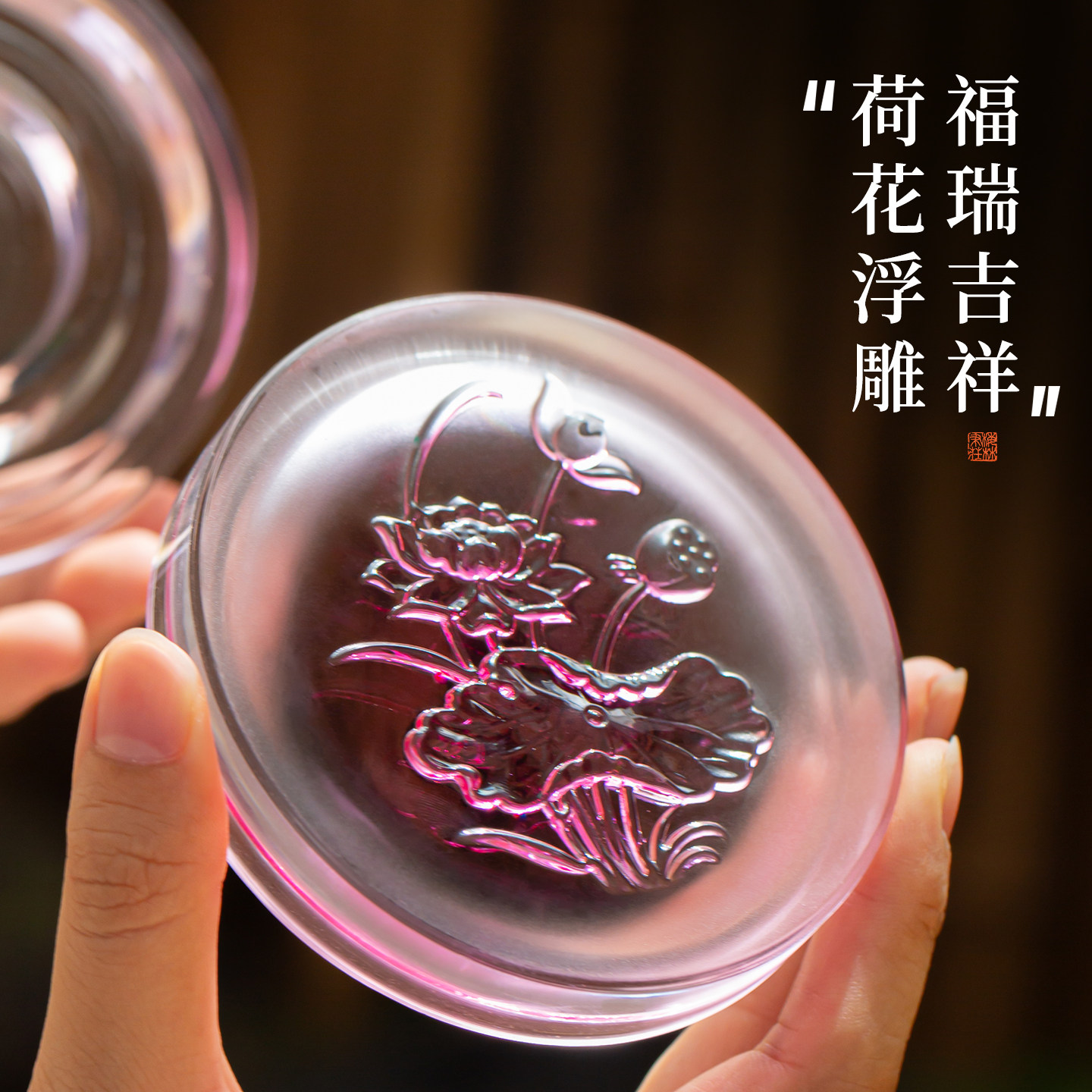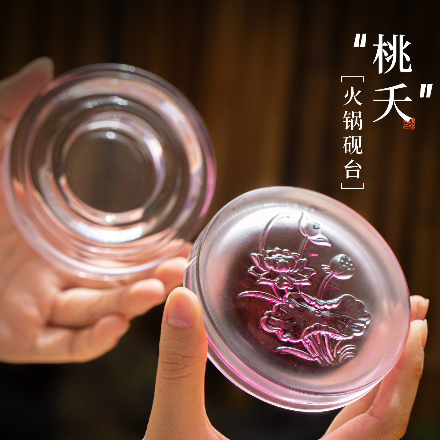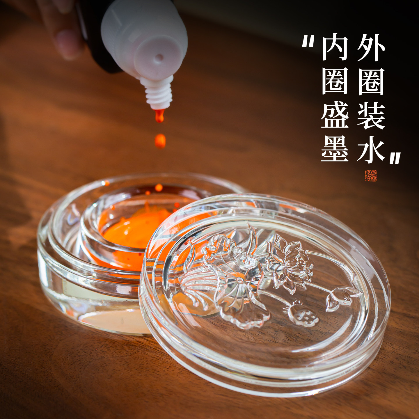 梅林笔庄水晶火锅砚琉璃款小楷砚台带盖保湿不干墨墨池迷你墨砚碟学生书法专用墨汁墨盘文房四宝桃夭高端墨盒