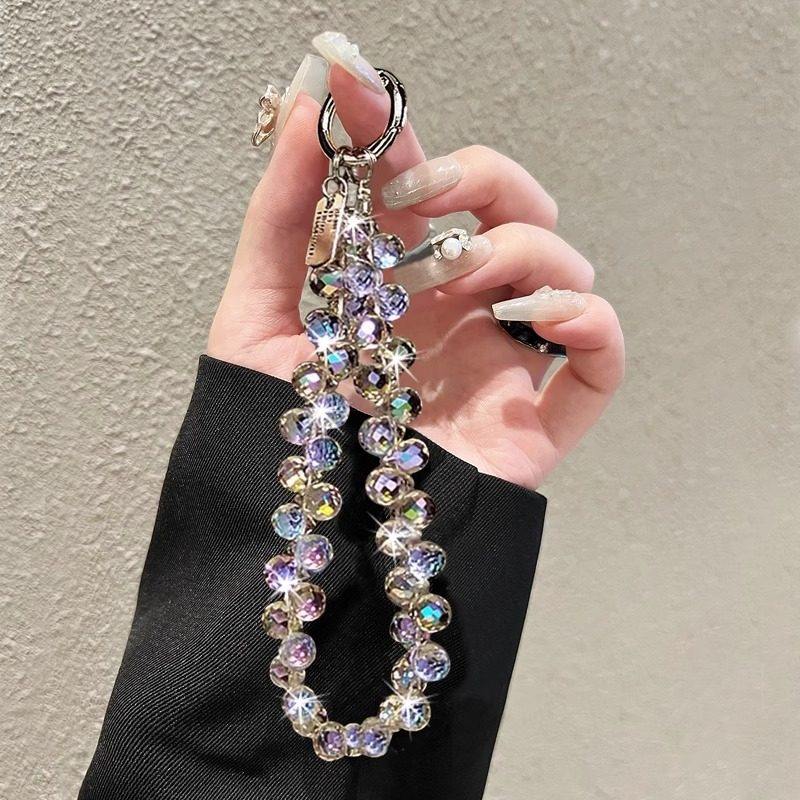 时尚奢华水晶珍珠链短款挂件镶钻流苏车钥匙包挂饰壳挂绳