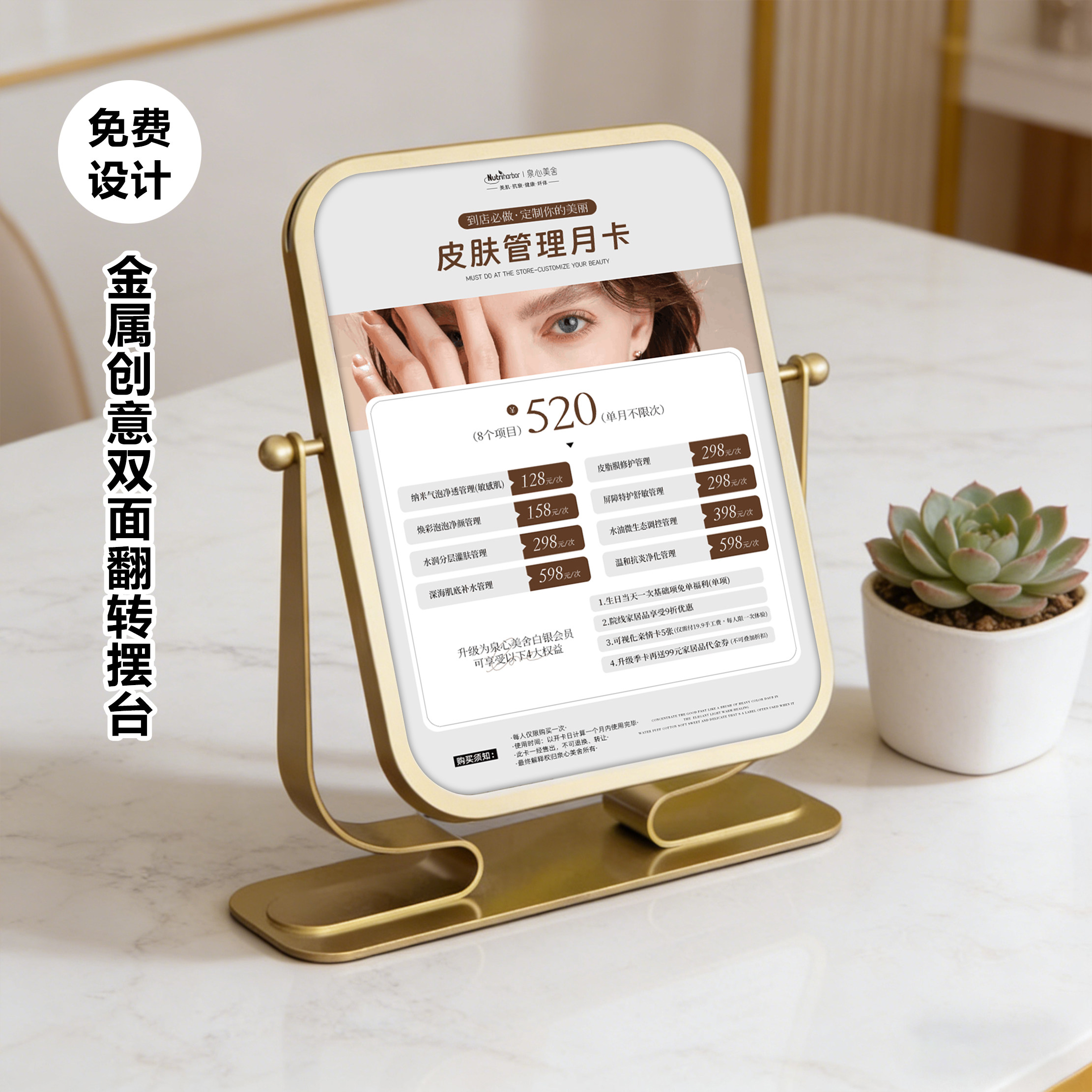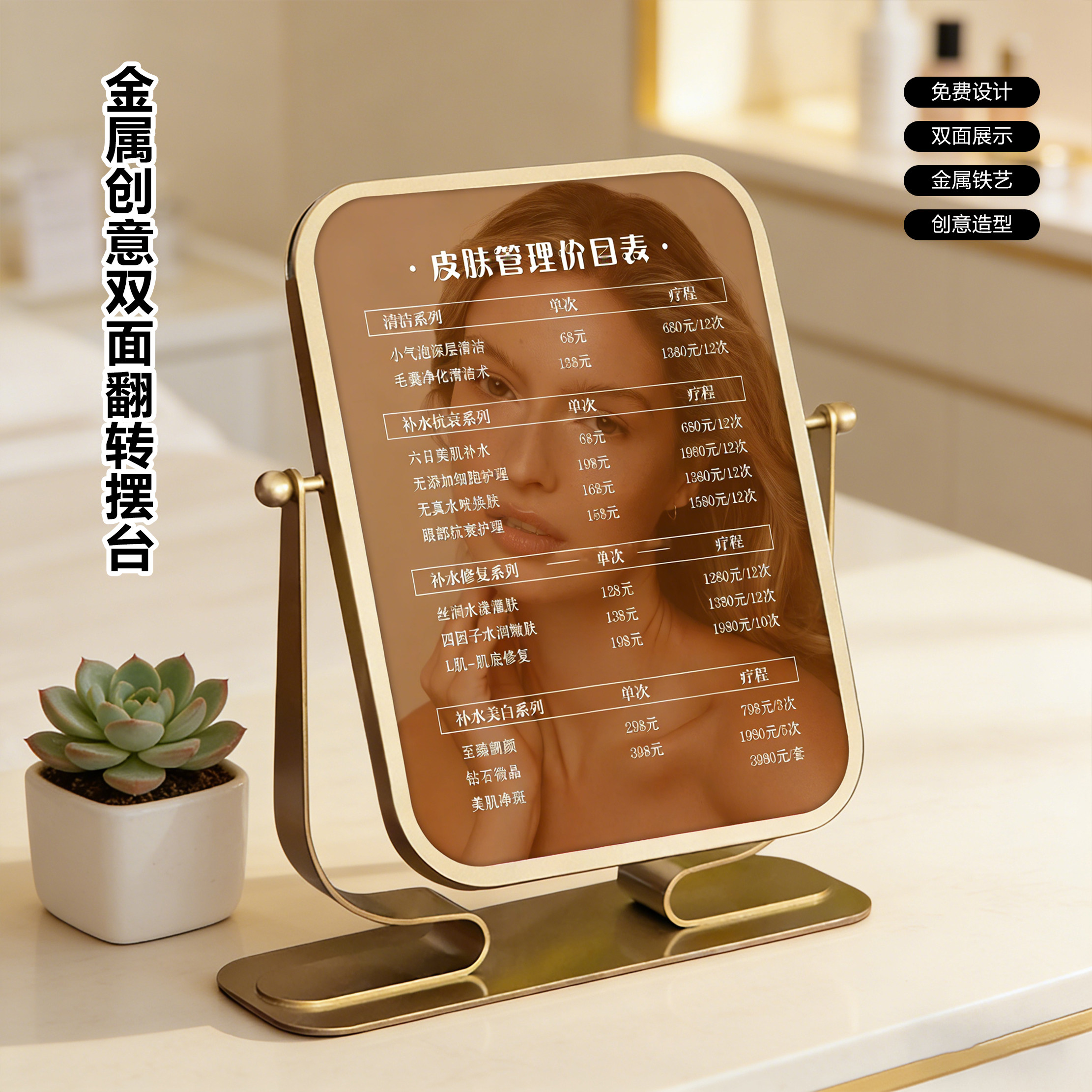 美业医美价格表美容养生护肤设计定制金属创意旋转亚克力桌面摆台