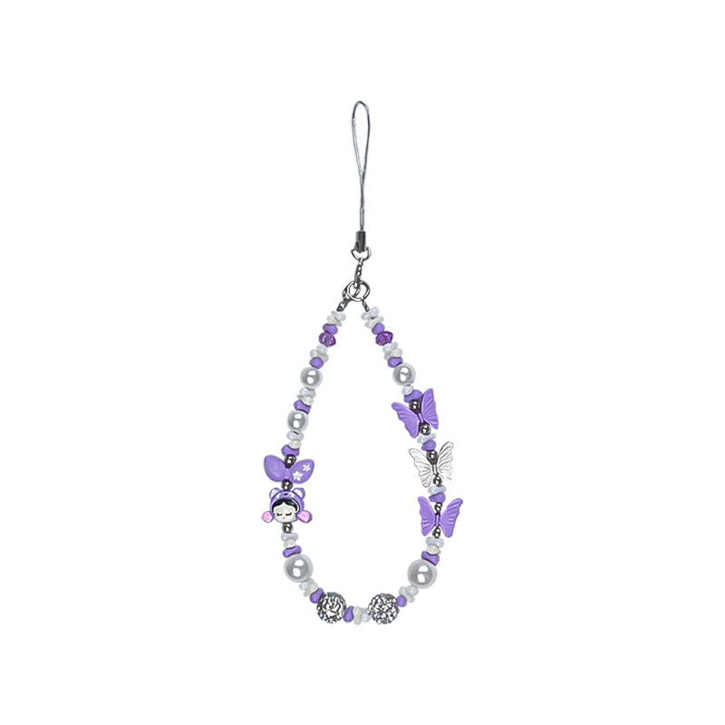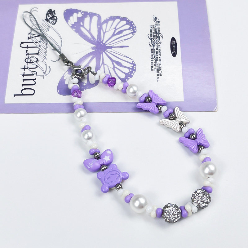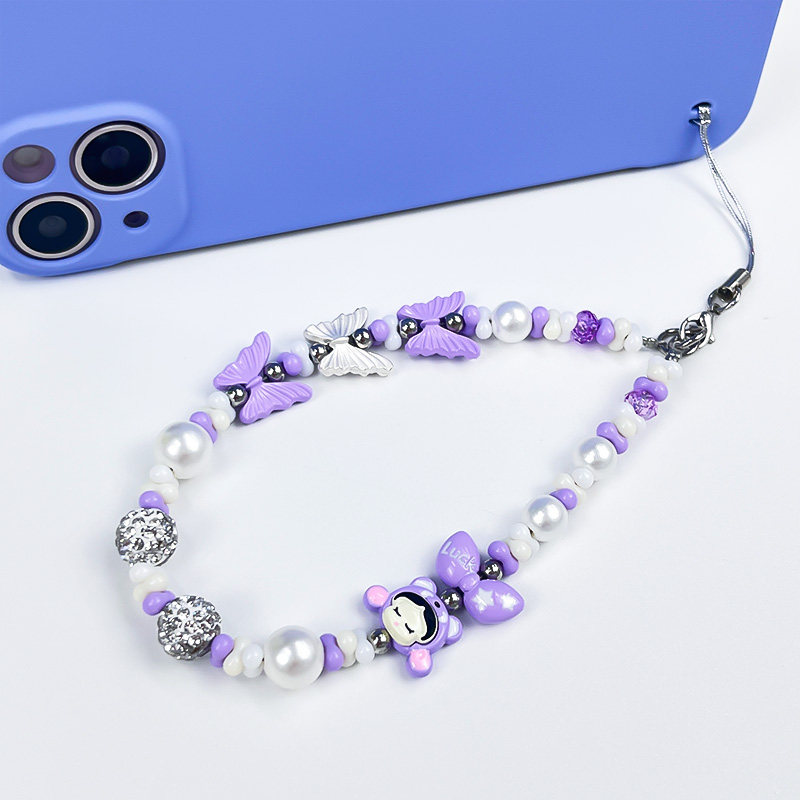 轻奢金属ins风手机壳挂绳手机链配件防丢挂绳手链重工精美浅色串珠便捷保护套挂件女孩蝴蝶珍珠链条五金