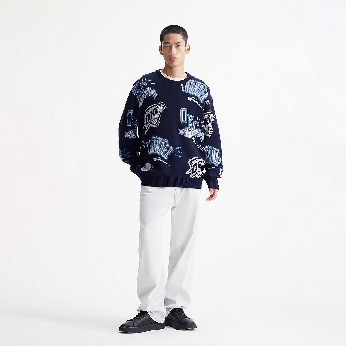杰克琼斯NBA联名款雷霆队男装冬季新款时尚满印宽松圆领毛针织衫