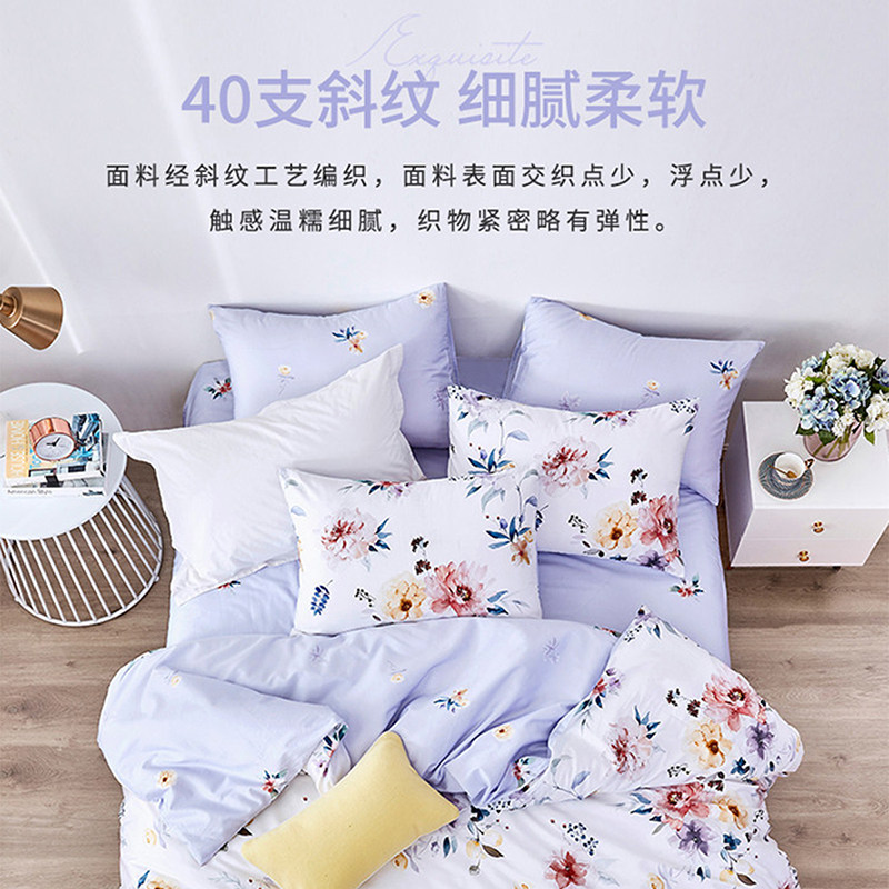 A类水洗棉双层纱四件套被罩非全棉纯棉床单人学生宿舍被套三件套