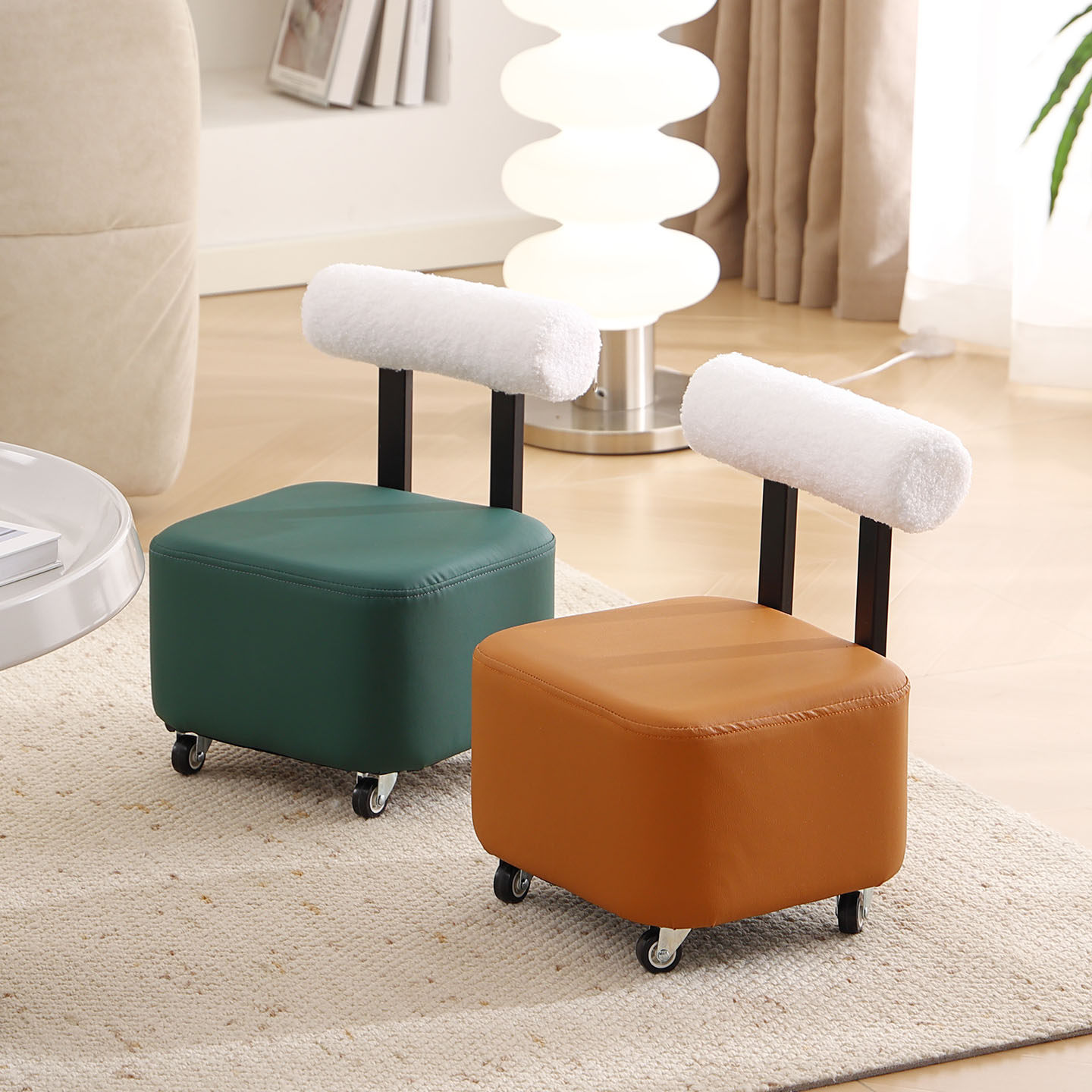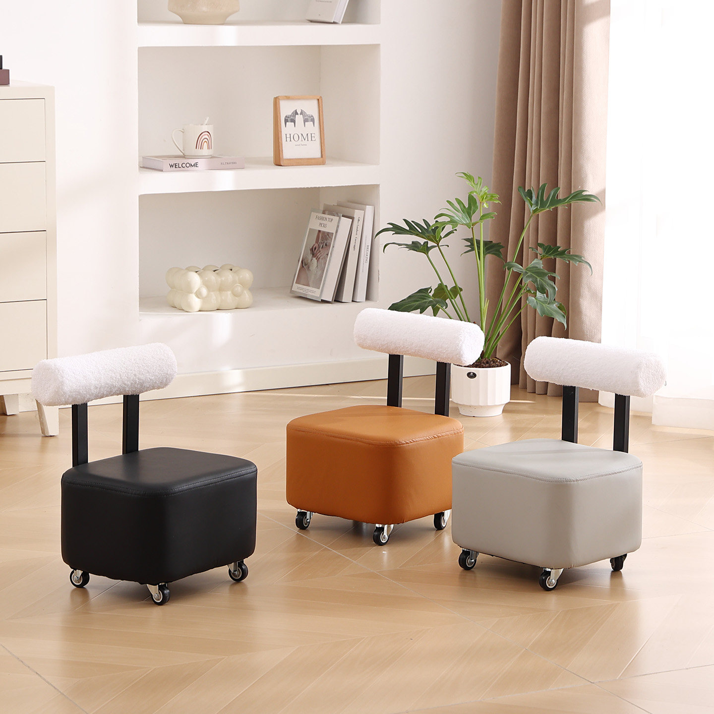 万向轮小凳子家用滑轮矮凳客厅沙发凳可移动靠背椅子换鞋凳带轮子