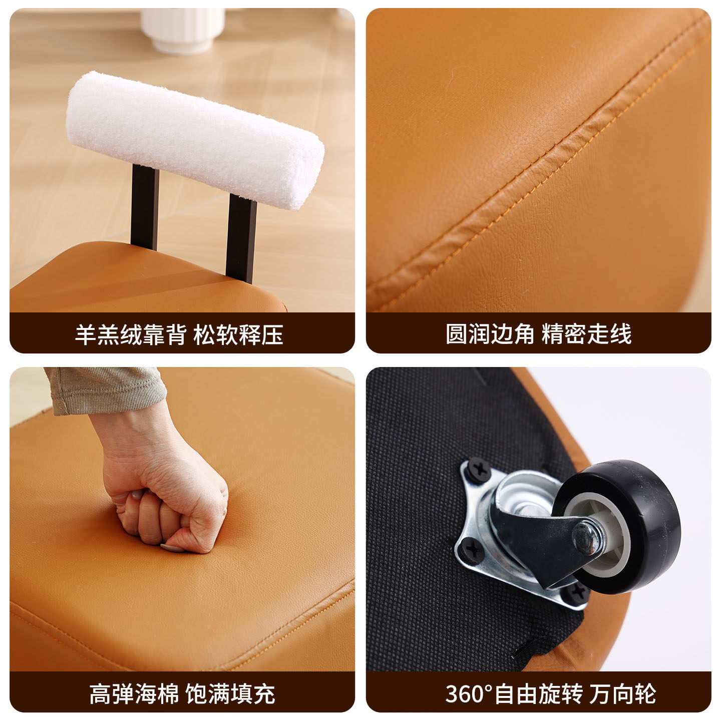 万向轮小凳子书桌用椅子家用滑轮凳子舒适久坐梳妆台化妆凳圆凳子