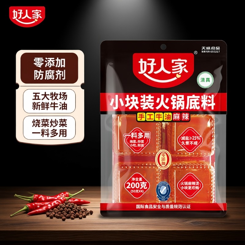好人家手工牛油火锅底料四川重庆麻辣牛油火锅调料麻辣烫小块酱香