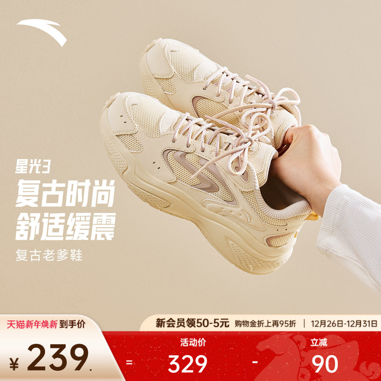安踏星光3丨厚底舒适休闲鞋女冬季时尚黑色老爹鞋软底运动鞋子