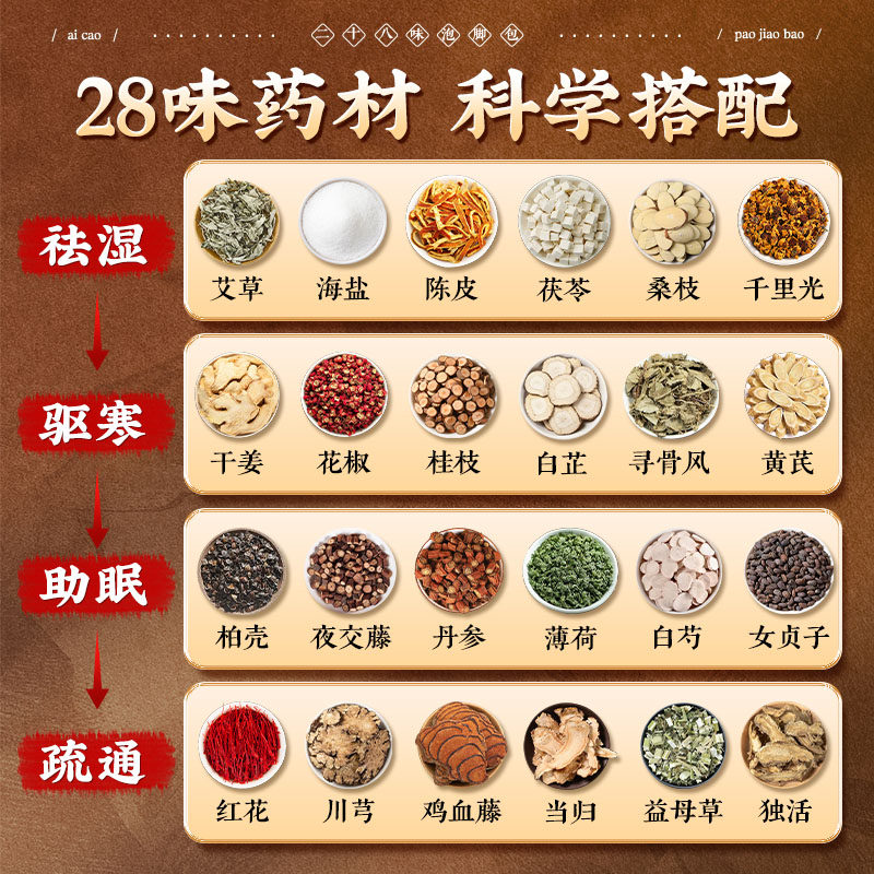 泡脚药包去湿气排毒助睡眠艾草叶生姜花椒红花中药非祛湿寒足浴包